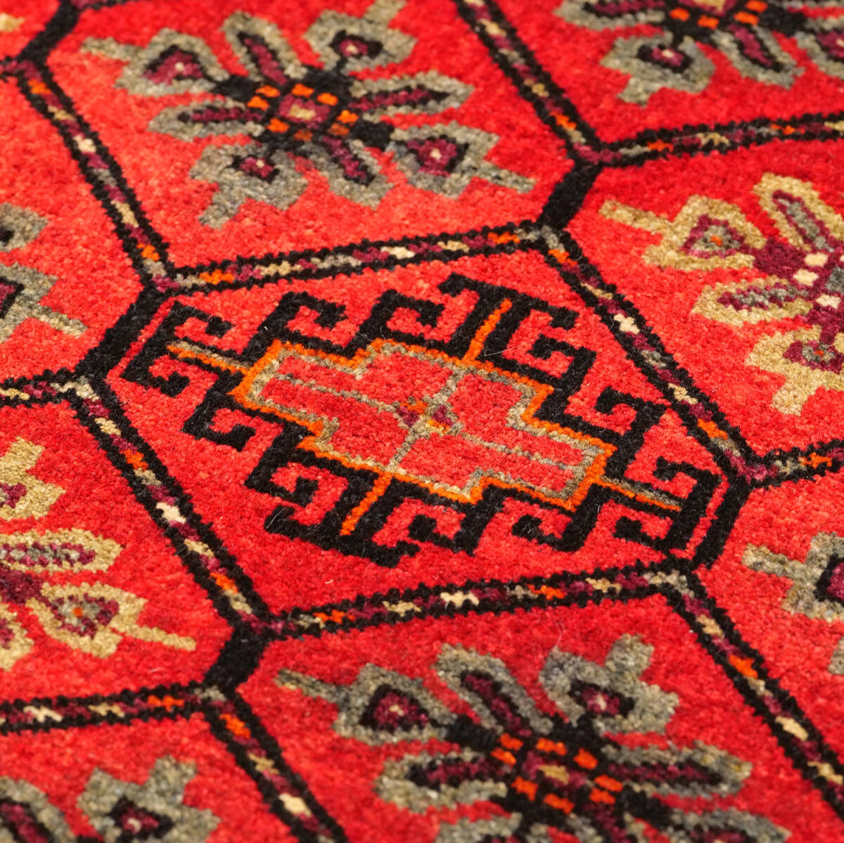 細やかな手織りと高品質なウールによる柔らかな質感が特徴です。ミナハニ文様の中にひとつだけ配置されたエルサリギュルは、織り手の意図を示す特別な要素であり、鑑賞性の高い逸品です。空間に伝統と個性が調和した温もりをもたらします。