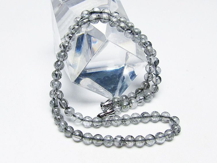 ■商品名: ブラックルチルクォーツネックレス ■商品ID: T354-6214 ■商品重量:約 15.4g ■商品サイズ:粒直径約:5mm 【ルチルクォーツ(針入水晶)】 ルチルクォーツは近年大人気の針状物質が入った水晶です。繊細な針が水晶の中でひしめきあい、きらきらと輝く様はまさに自然の芸術品。 様々な色のタイプがありますが、共通する効果としては財運や金運を強力に集め、事業運、商売運、目標達成、直観力をもパワーアップさせると言います。また邪気を払ってくれるとされています。 財に関わる直観力が冴えるとされますので、投資やギャンブル運アップも期待できます。 ■ワンポイント情報 一般にクリアでかつ金針が密集しているもの程価値があるとされていますが、内包物を含む水晶は濁ったように結晶しやすく、ルチルクォーツは針が多くなるとどうしても透明感は下がってきます。しかしながら天然石は世界に一つしかありません。いろいろ状態のルチルがありますので直感で閃いたものが、世界で一人の自分のための水晶といえるでしょう。 気の遠くなるような年月をかけ育つ水晶の中に、偶然に針状物質が入り込む。この奇跡のような自然の神秘に是非触れてみて下さい。体の底からパワーが湧き出してくるはずです。 【ブラックルチルクォーツ(黒針水晶)】 様々な色のタイプがありますが、共通する効果としては財運や金運を強力に集め、事業運、商売運、目標達成、直観力をもパワーアップさせると言います。また邪気を払ってくれるとされています。 財に関わる直観力が冴えるとされているので、投資やギャンブル運アップも期待できます。 とても強力な水晶といわれており、幸運のお守りとなります。 ブラックルチルは黒色のトルマリンが入った水晶です。ビジネスやスポーツ等の勝負の場で精神力と忍耐力を与え、勝利へと導いてくれるとされています。健康運アップも望めます。 ■ワンポイント情報 一般にクリアでかつ金針が密集しているもの程価値があるとされていますが、内包物を含む水晶は濁ったように結晶しやすく、ルチルクォーツは針が多くなるとどうしても透明感は下がってきます。しかしながら天然石は世界に一つしかありません。いろいろ状態のルチルがありますので直感で閃いたものが、世界で一人の自分のための水晶といえるでしょう。 気の遠くなるような年月をかけ育つ水晶の中に、偶然に針状物質が入り込む。この奇跡のような自然の神秘に是非触れてみて下さい。体の底からパワーが湧き出してくるはずです。 【水晶(石英、クリスタルクォーツ)】 水晶とは石英を指しますが、一般的に無色透明のものをクリアクォーツやロッククリスタルと呼んでいます。 水のように美しく透き通ったものが良いと思われがちですが、内部にヒビや他の鉱物などのインクルージョン(内包物)が入っているものがあり、それが天然物の証。また、インクルージョンによって様々な種類に分類され、それぞれ違った印象を与えてくれます。 古くから呪い事に使われてきた水晶に秘められたパワーはとても万能で、あらゆる場面に対応するといわれています。特に邪気を祓う力が強いため、人間関係を円滑にしたり、心身をクリアな状態にしたい場合に最適です。また空間を浄化する作用もあるとされ、インテリアとしても高い人気を誇っています。 石自体に強い自浄作用があり、他のパワーストーンが吸収した負のエネルギーを浄化するといわれています。更にアクセサリーとして他の石と組み合わせる場合、それぞれの石の個性を引き出しバランスを取ってくれる効果があるそうなので、ぜひとも組み込んでおきたいですね。 パワーストーン入門に最適な水晶ですが、愛好家にとってはかなり奥が深く最後に行き着くのもこの石なんだそうです。何もかもを見透かすような透明な水晶には、本当に神秘的なパワーが宿っているのかもしれません。 |