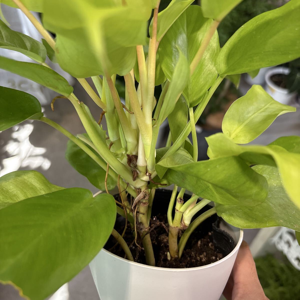 葉色と形状: レモンライム色の縦長の葉(約15cm)が美しく、初期は直立して成長し、後に蔓状に伸びます。