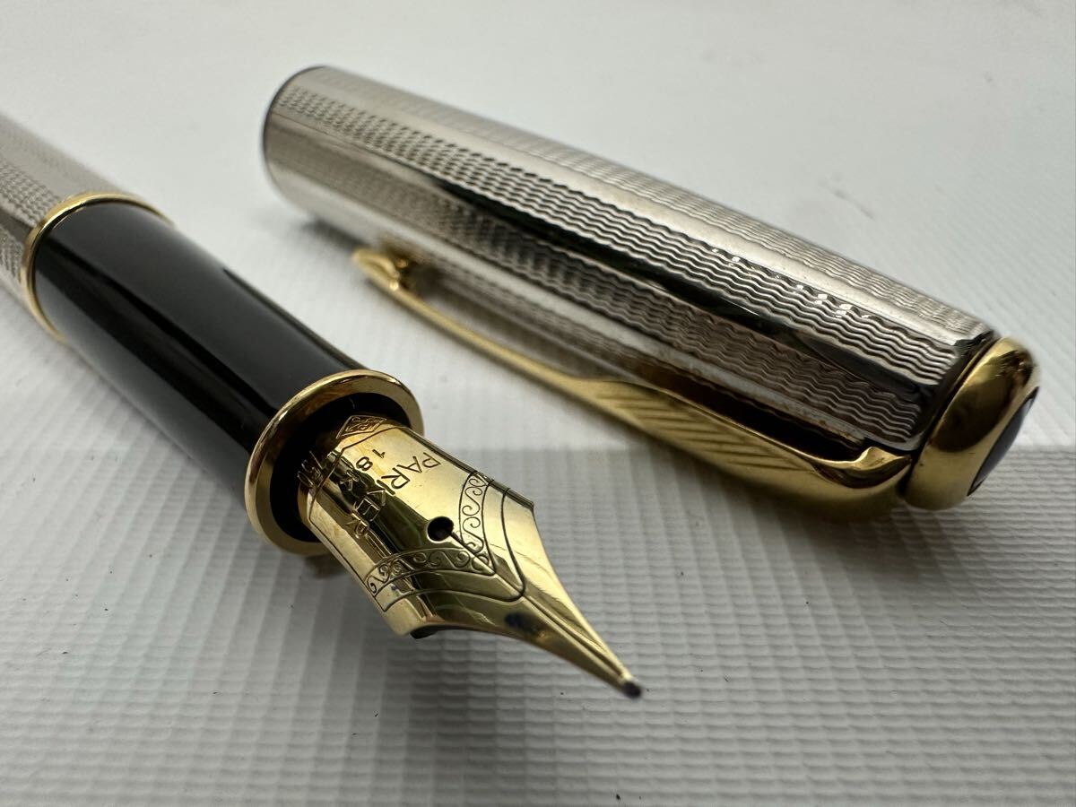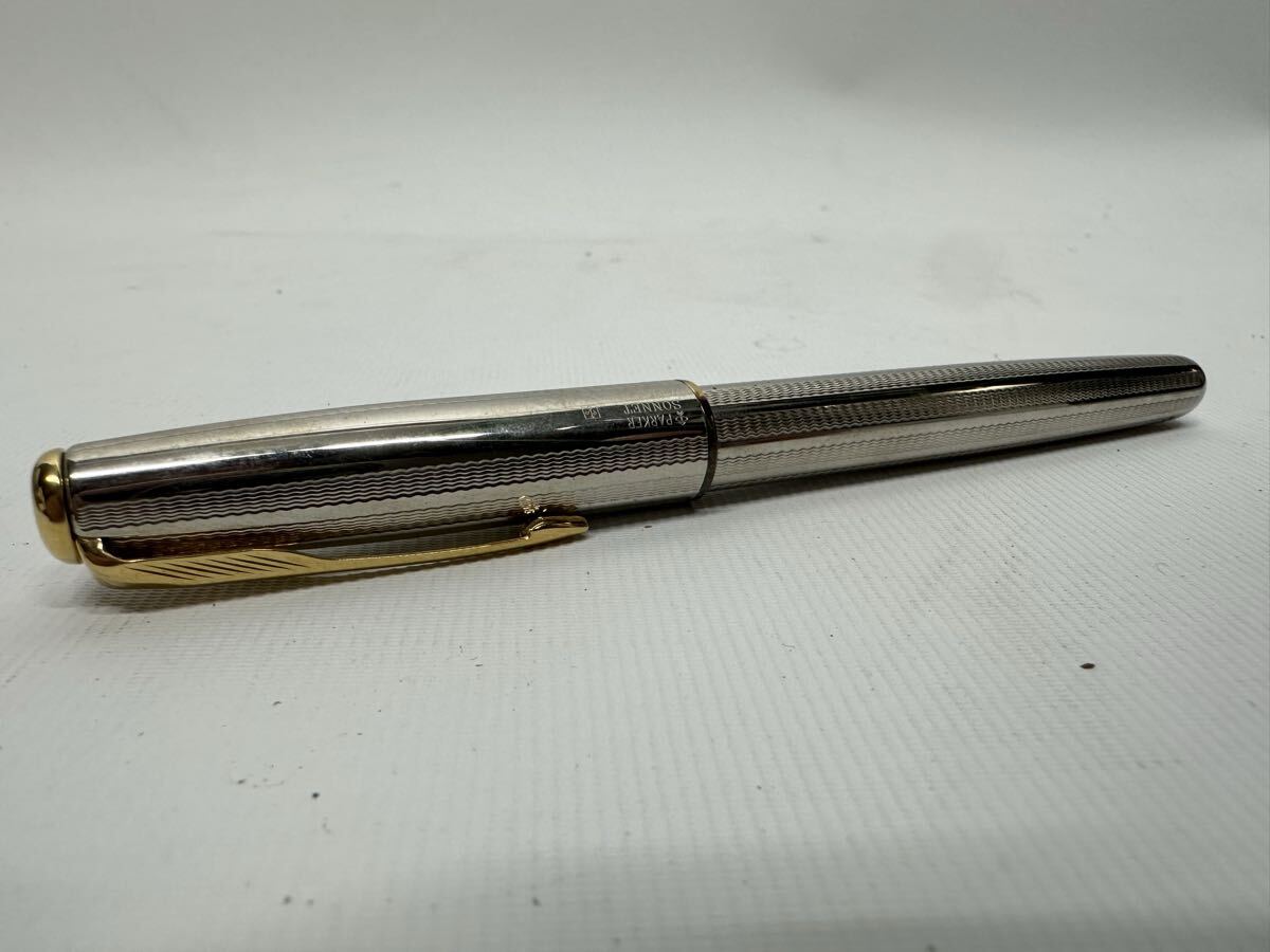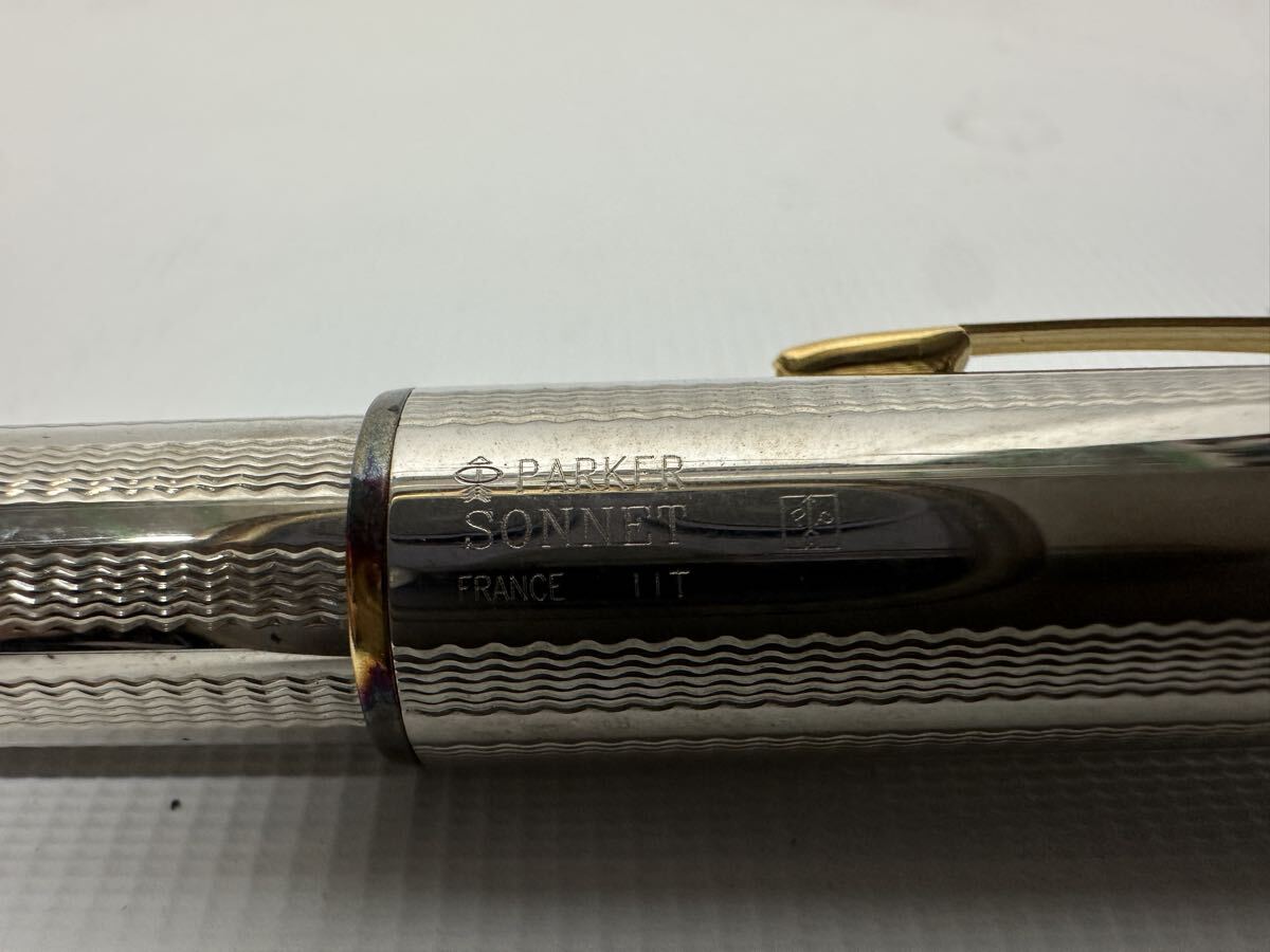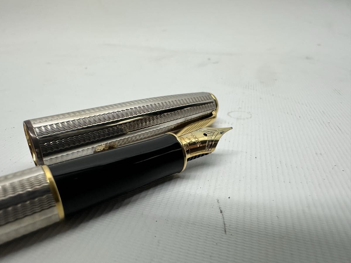 【おそらく未使用】 PARKER SONNET 万年筆 ペン先18K ケース、インク、説明書付き パーカー ソネット 総柄 文房具 文具