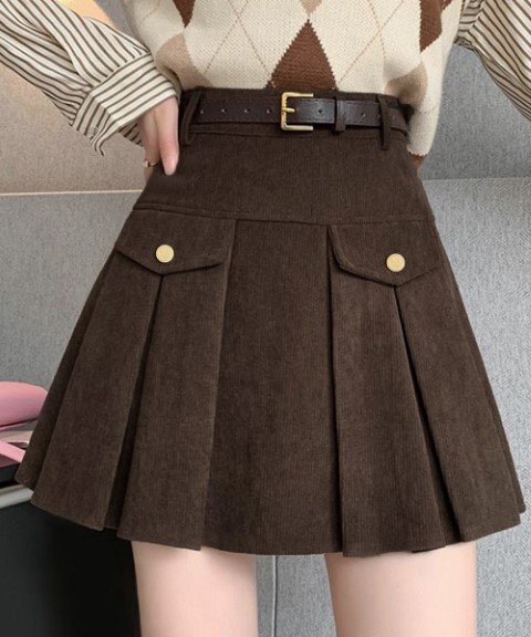 温かみのあるコーデュロイ素材を使用したプリーツスカートです。
