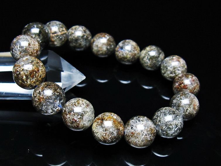 ■商品名: ガーデン トルマリンルチル入り ブレスレット ■商品ID: T253-3081 ■商品重量:約 51.7g ■商品サイズ:内周約:168mm(±5mm)粒直径約:13mm(±0.5mm) 【パワーストーン】 パワーストーンとは、不思議な力が宿るとされている石を指します。明確な定義はありませんが、ダイヤモンドなどの煌めくような宝石をはじめ、岩塩などの身近な鉱物など種類は様々。 身に付けていると災いを遠ざけたり幸運を運んでくれるとされ、古来からお守りとして人々に愛されていました。 パワーストーンの歴史は古く、古代エジプトではミイラと一緒にラピスラズリやタイガーアイ、カーネリアンなどの天然石で作られた装飾品が納められていました。また、世界中の様々な場所で病気の治療や呪術に使われたことから、時代や場所を問わず神秘性は変わらなかったことが分かりますね。 そして現在も、パワーストーンは気の乱れを浄化したりストレスを和らげてくれたり、更には人間関係を円滑にしたりする効果が期待され、美しい輝きとともに多くの人々を魅了しています。 天然石であるパワーストーンの見た目は一つ一つ違いますが、深く考えずに直感で選んだものが一番自分に合っているといわれています。しかし「これがどんな石なのかよく分からない」という場合は、石に込められている意味を調べたりして何が自分に向いているか探すのもいいかもしれません。お守りやお洒落なアクセサリーとして、ぜひ取り入れてみたいですね。 |