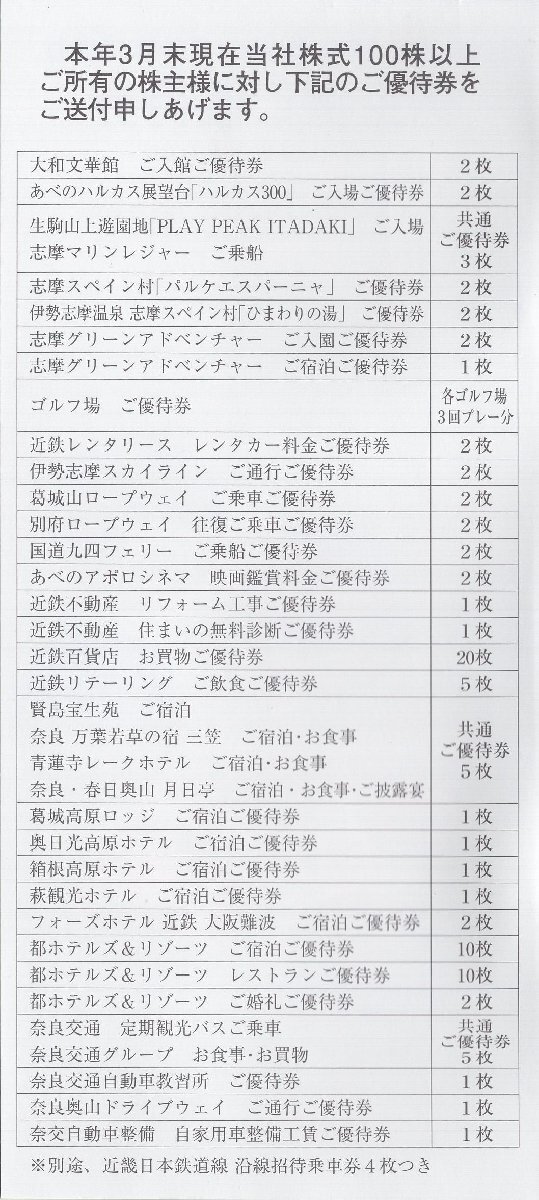 ・近鉄グループホールディングス 株主様ご優待券(冊子)です。