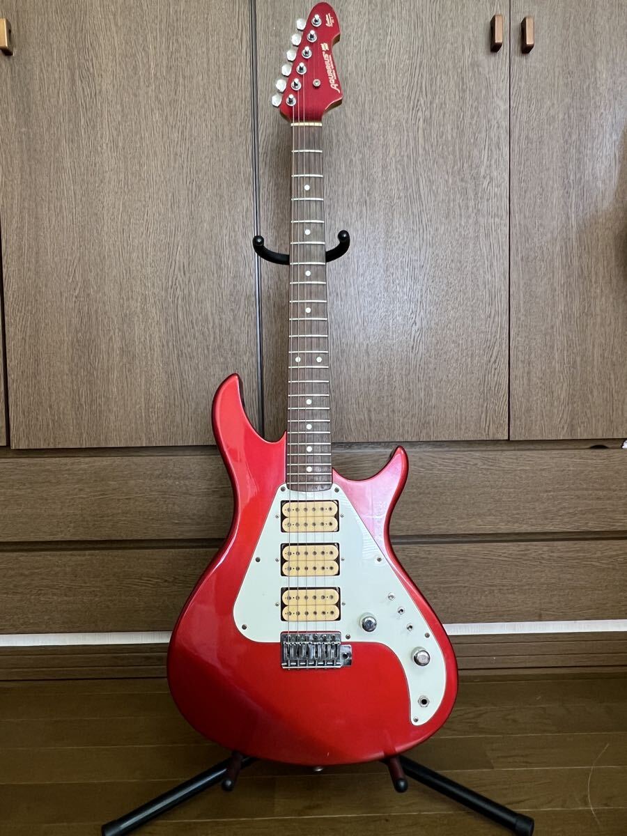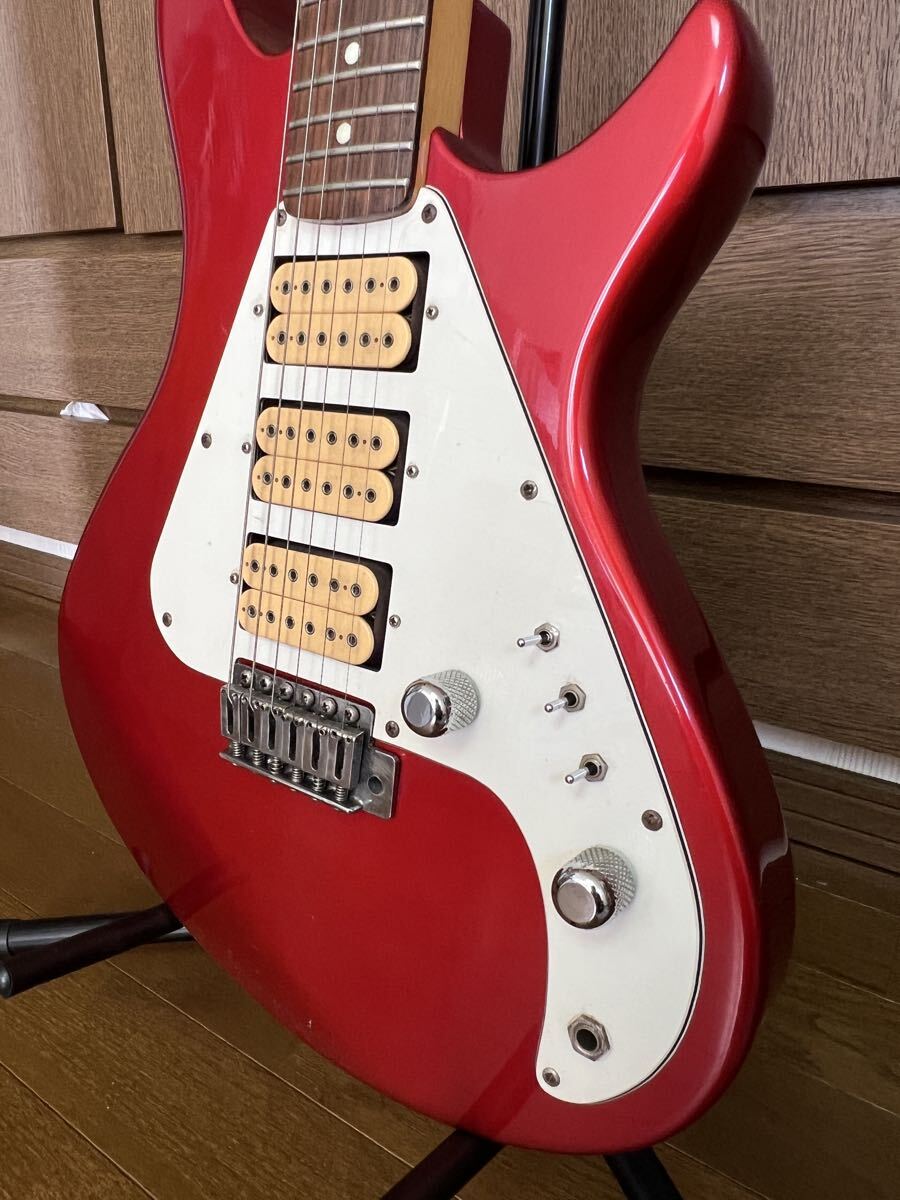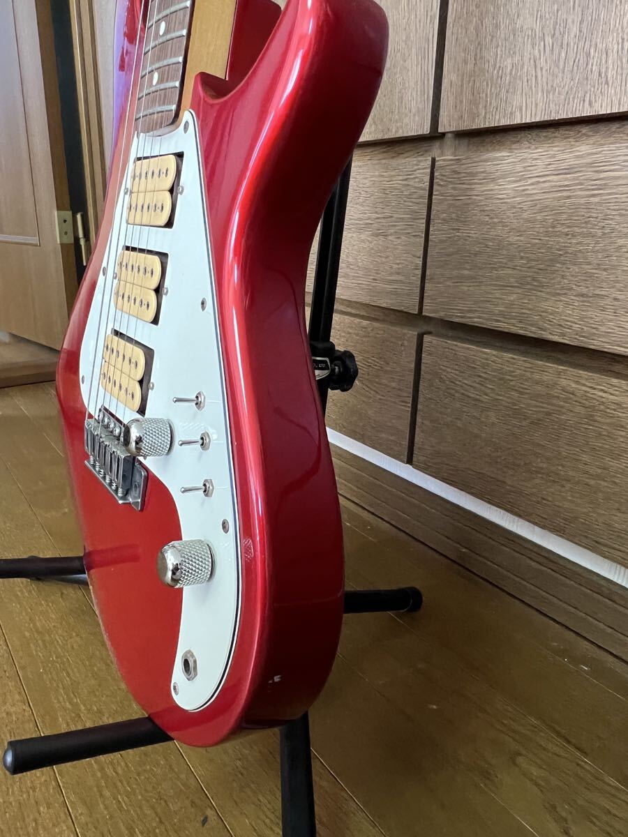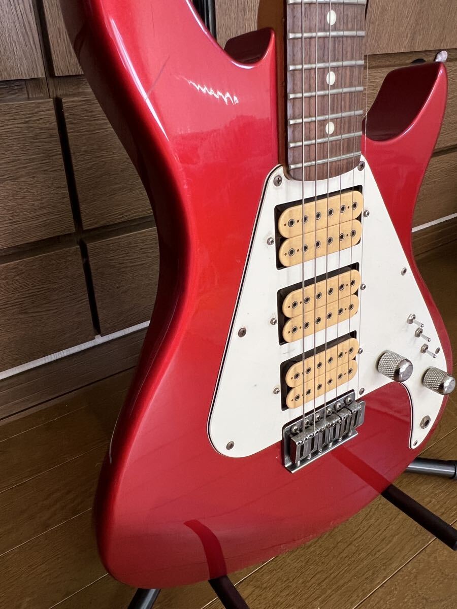 ご覧いただきありがとうございます。ストラトモチーフのボディに3ハムバッカーPUという、非常に珍しい仕様を持った1本です。