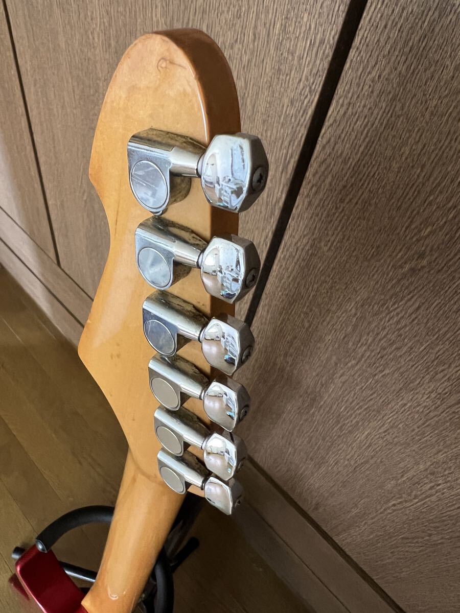 それぞれ独立したオンオフがついており、方向によってコイルタップさせることも可能です。3つそれぞれハム、シングル、offの組み合わせが可能です。指板Rはヴィンテージ系ストラトよりきつい150Rという、他のギターでは味わえない独創性を感じられます。傷や打痕などもありますが、製造から40年近いギターとしては綺麗な状態を保っており、コレクターの方にもおススメな一本です。アームが欠品です。