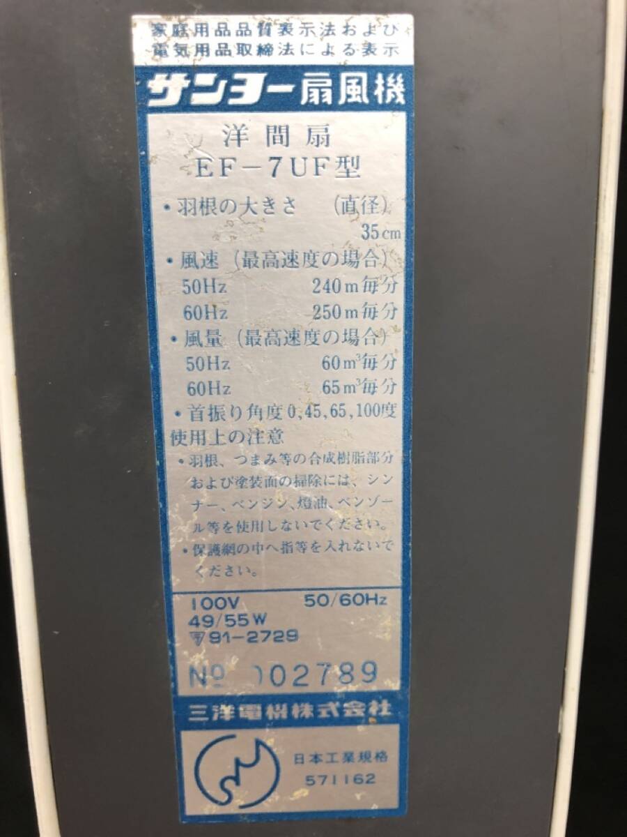 ・扇風機 通電◯ SANYO サンヨー 洋間扇 EF-7UF型 35㎝ 元箱付 グリーンカラー