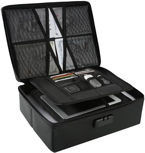 Octantis 耐火バッグ 家庭用 耐火 耐水 【型崩れしない & ダイヤル式】鍵付き 耐火ケース 防爆 防災 大容量 重要書類 保管 貴重品ボックス 手提げ 防災バッグ 家庭用 オフィス用 耐火収納ケース