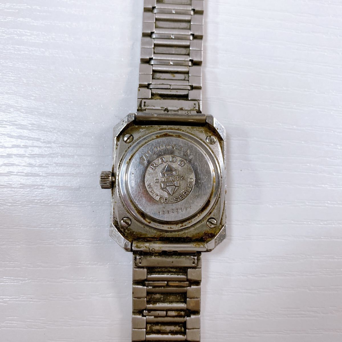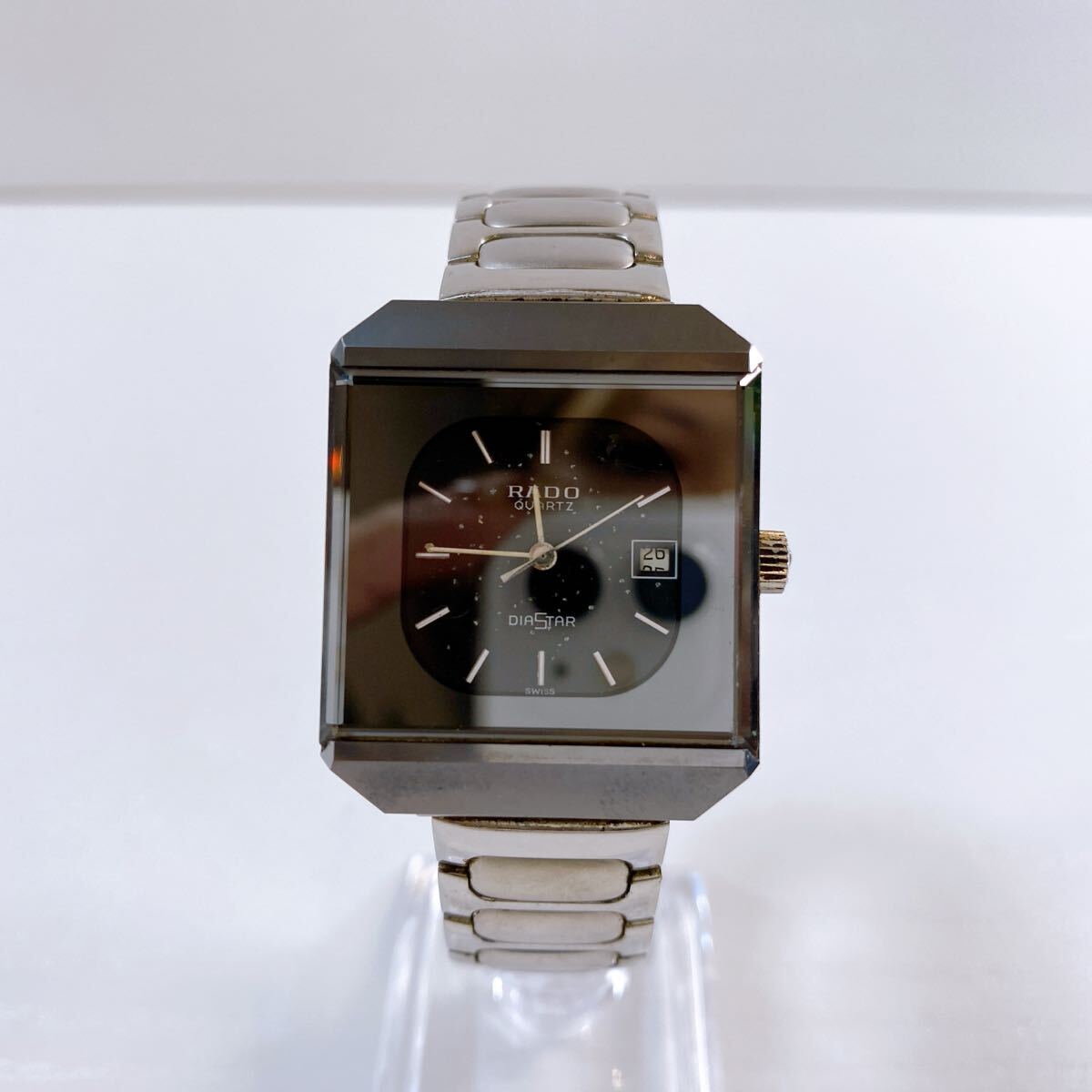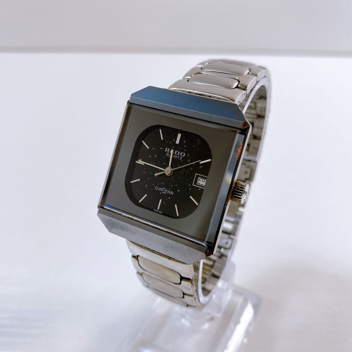 359【中古】RADO DIASTAR ラドー ダイヤスター クォーツ SS デイト スクエア シルバー 文字盤ブラック メンズ腕時計 動作未確認 現状品