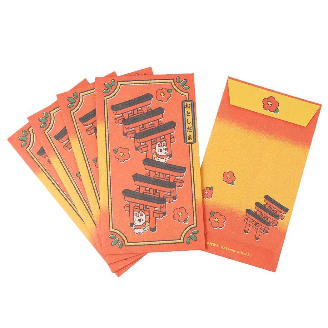 中村杏子 ぽち袋 年賀ぽち袋 5枚セット 鳥居 フロンティア 金封 お年玉袋 伊予和紙 グッズ