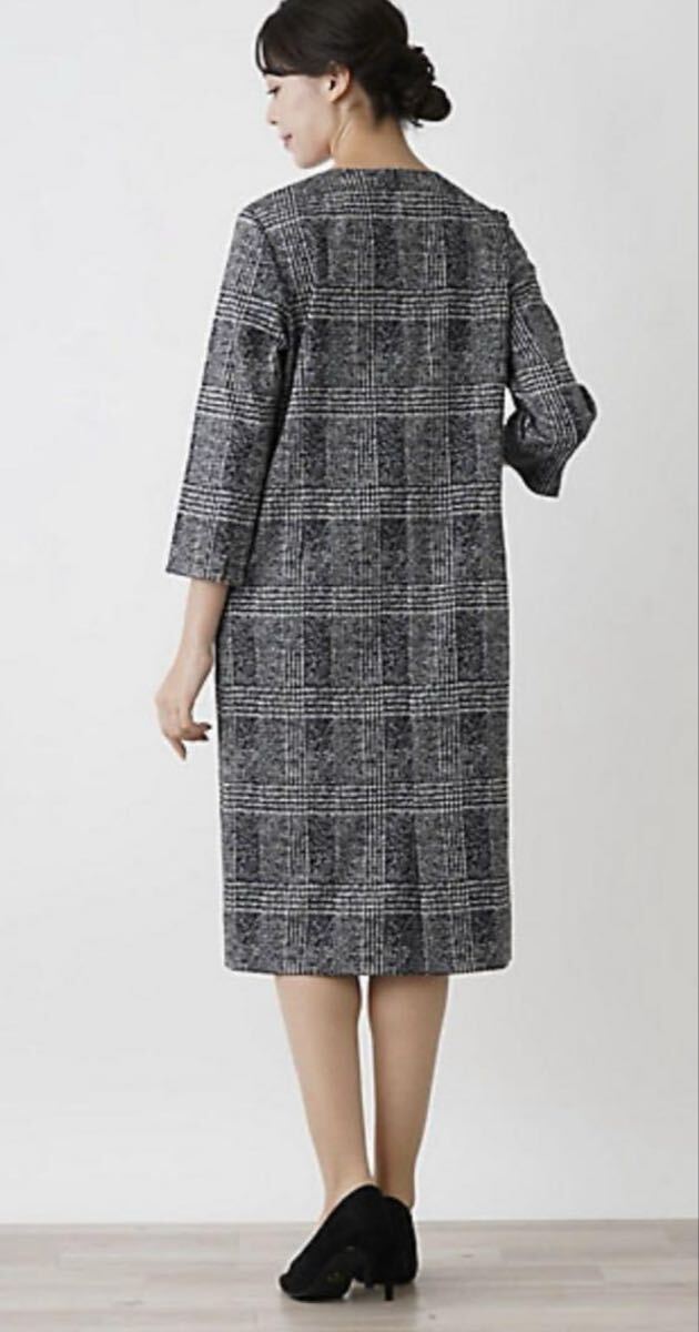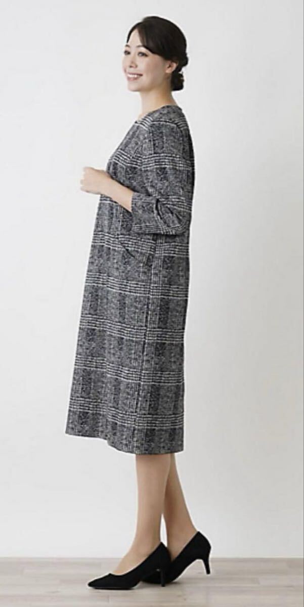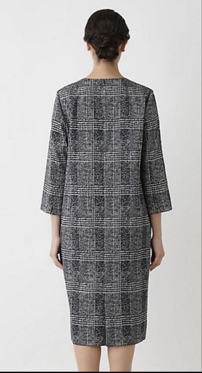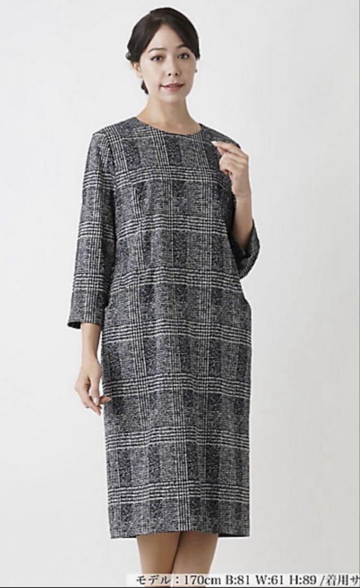 クラシカルな趣のグレンチェックが彩る、クロップドスリープのサックワンピース。ネックラインを浅めに設定し、すっきりとした上品な佇まいに。お酒
