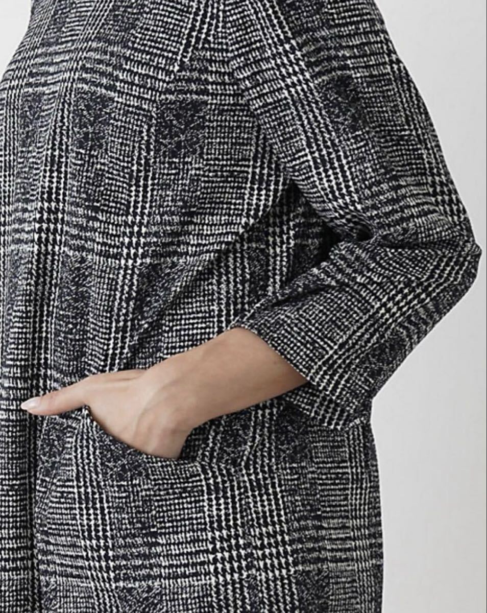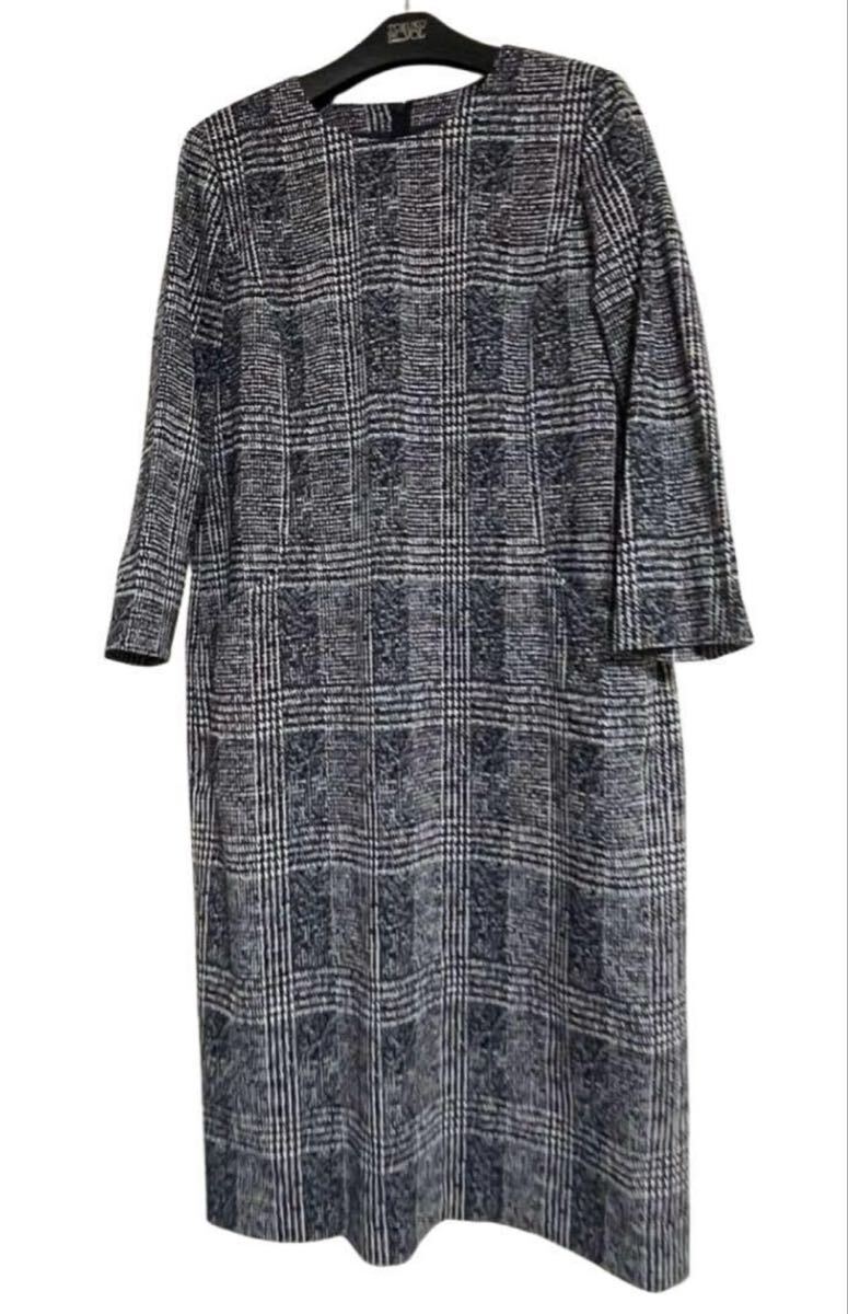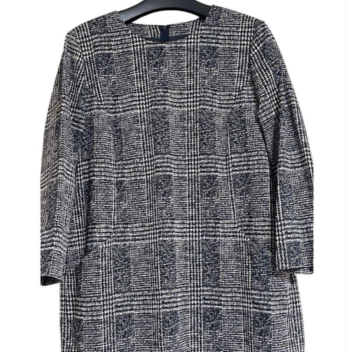 クラシカルな趣のグレンチェックが彩る、クロップドスリープのサックワンピース。ネックラインを浅めに設定し、すっきりとした上品な佇まいに。お酒