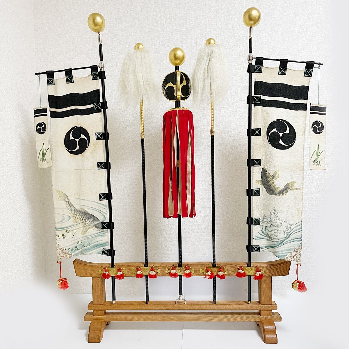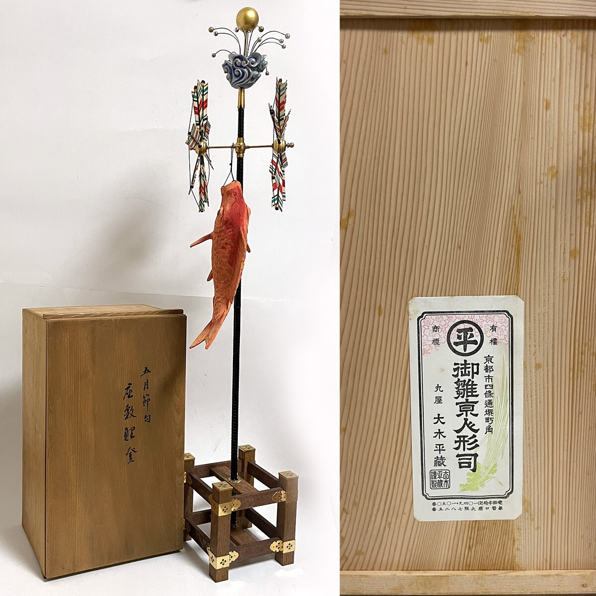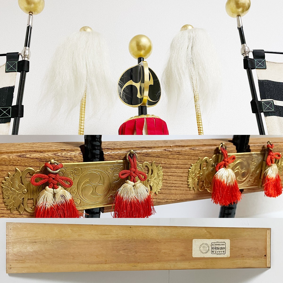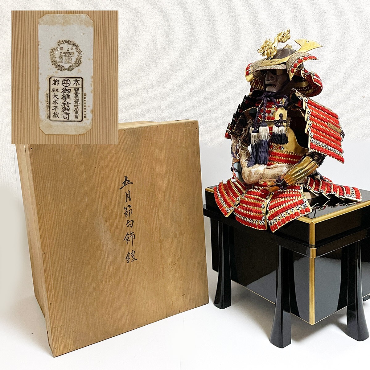 大正初期の丸平の五月節句飾です。※鯉幟は大正末期頃の商標です。 若干のシミ等はあるものの、100年前の品とは思えないほど良い状態で保管されています。 鎧だけでなく、座敷幟や弓太鼓、鯉幟まで揃っているのは大変貴重な品かと思います。 おそらくこれだけのセットがヤフオクに出品された事は過去10年でも 一度もなかったかと思いますので、この機会に是非入札ご検討ください。 品物はすべて丸平の札が貼られた共箱に収納されています。 当時の資料がなく細かい部分まで揃っているかの確認が難しく、 写真掲載の品が全てになりますので、ご理解の上写真をよくご覧になり ご入札をお願い致します。 |
