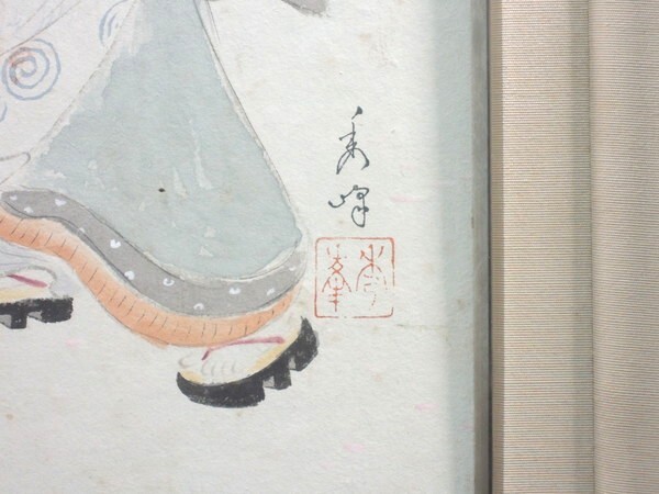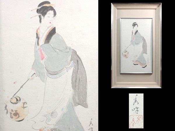 真作/山川秀峰/「芸者」/日本画/6号/額装品/直筆サイン入り/落款入り/美人画/人物画/作家物/美術品/師:鏑木清方・池上秀畝