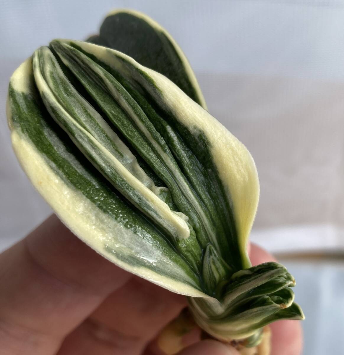 ただ、こちらも瑞泉と並んで作にコツが必要で、丸く芸が乗った葉を重ねるのはなかなか難しいです。是非挑戦してみてください。片繰りですが、来年には両方に葉が伸びますので、ご安心下さい。