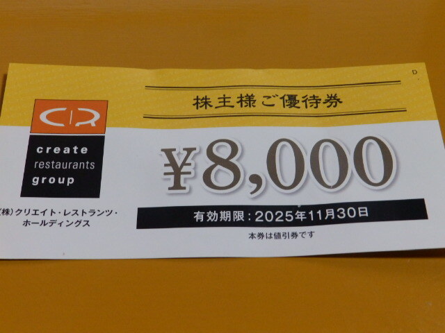 クリエイトレストランツホールディングス 株主優待券 8000円分 | |