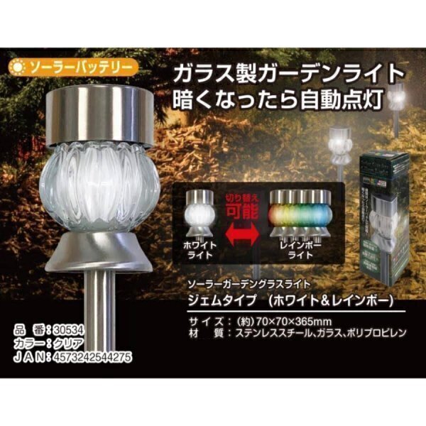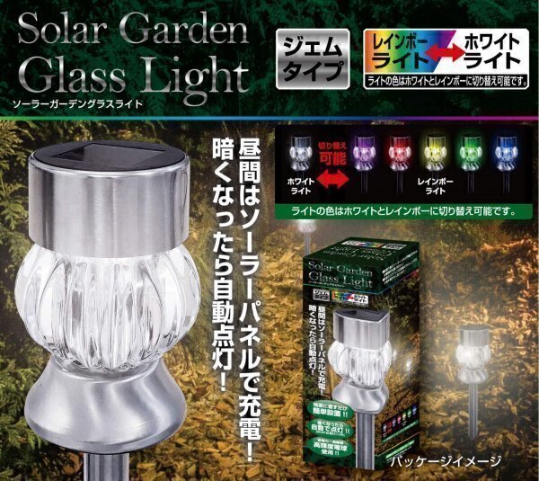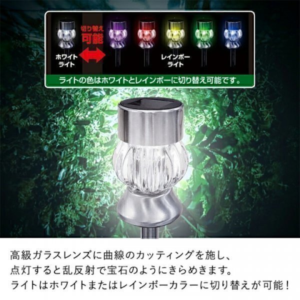 ZB354-1B ② 2本セット トレードワン(Trade One) センサーライト ホワイト&レインボー 30534 ソーラーガーデングラスライト ジェムタイプ