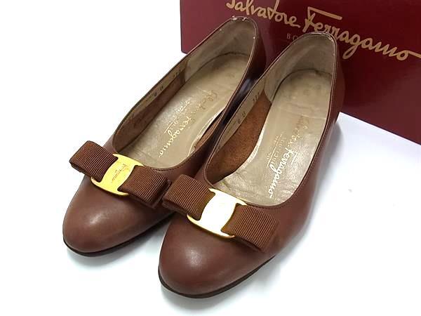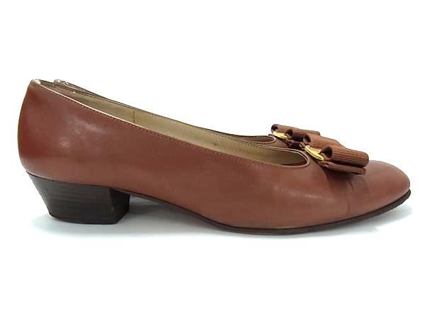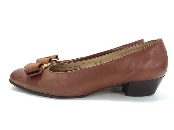Salvatore Ferragamo フェラガモ ヴァラリボン レザー ヒール パンプス 表記サイズ6 (約23cm) 靴 シューズ ブラウン系 DI2094