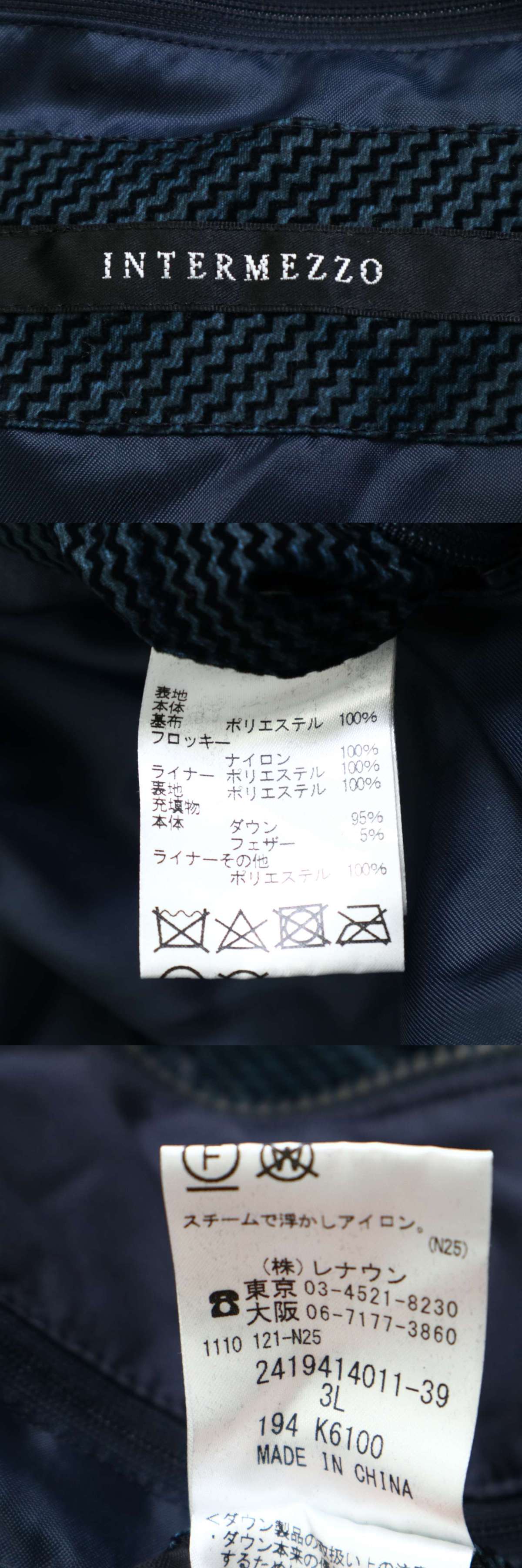 INTERMEZZO インターメッツォ レナウン 秋冬 レイヤード風★ フロッキー ダウン ジャケット Sz.3L メンズ 大きいサイズ