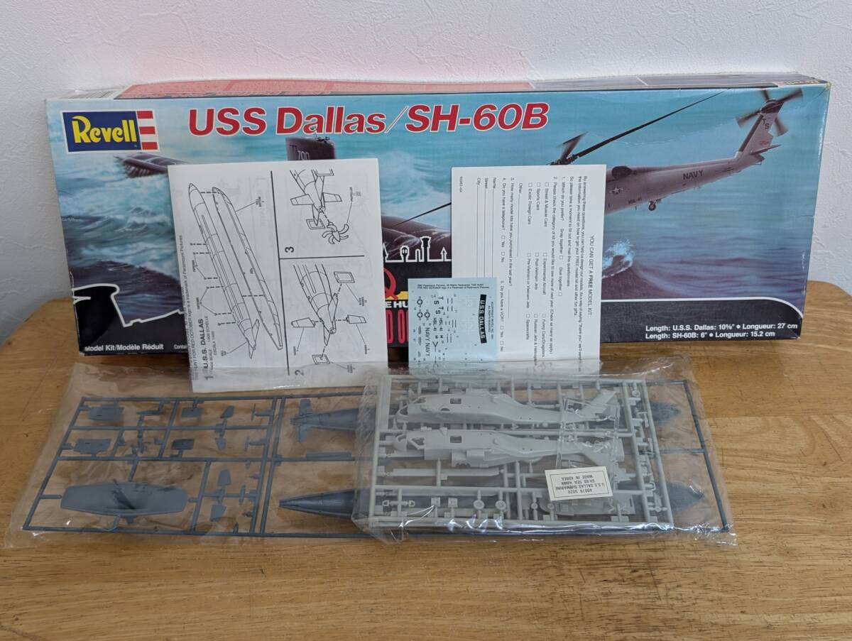 レベル1/400 USS Dallas/SH-60Bです。箱は汚れ、へこみ、キズがあります。袋部品未開封です。潜水艦とヘリコプターのキットです。欠品があってもご容赦下さい。興味ある方いかがですか。