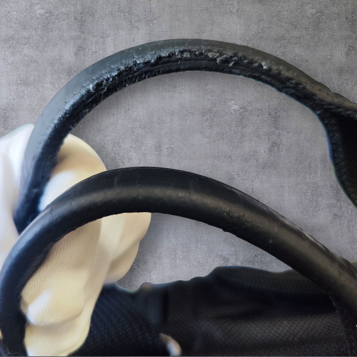 8.9.10枚目の写真をご覧下さい。 2箇所やや角スレあり、持ち手に使用感がありますが、その他には目立った汚れや傷がなく綺麗な状態です。