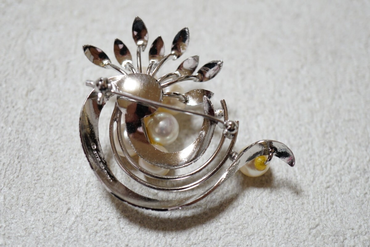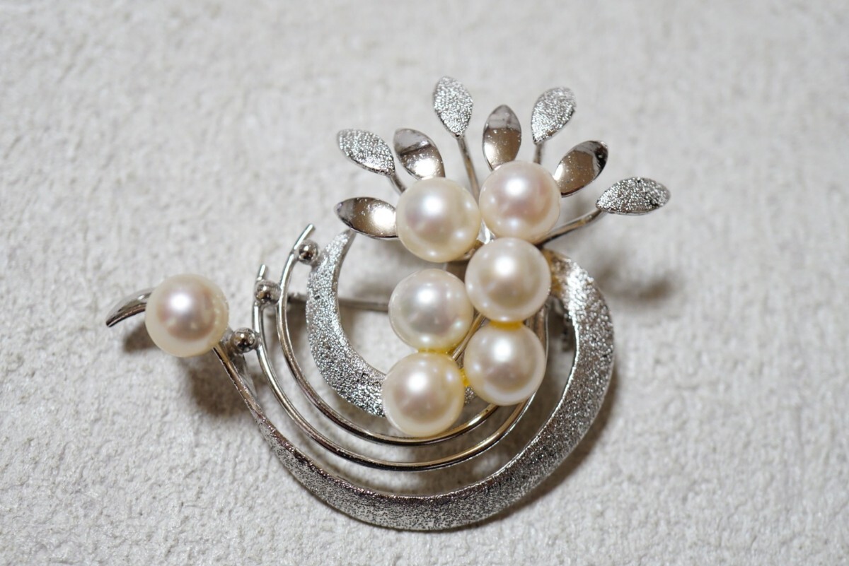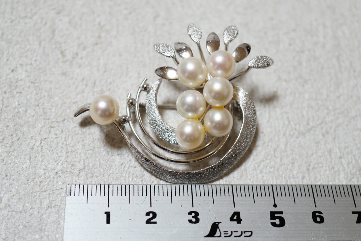 487 アコヤ真珠 本真珠 パール シルバー ブローチ ヴィンテージ アクセサリー SILVER刻印 冠婚葬祭 あこや 装飾品