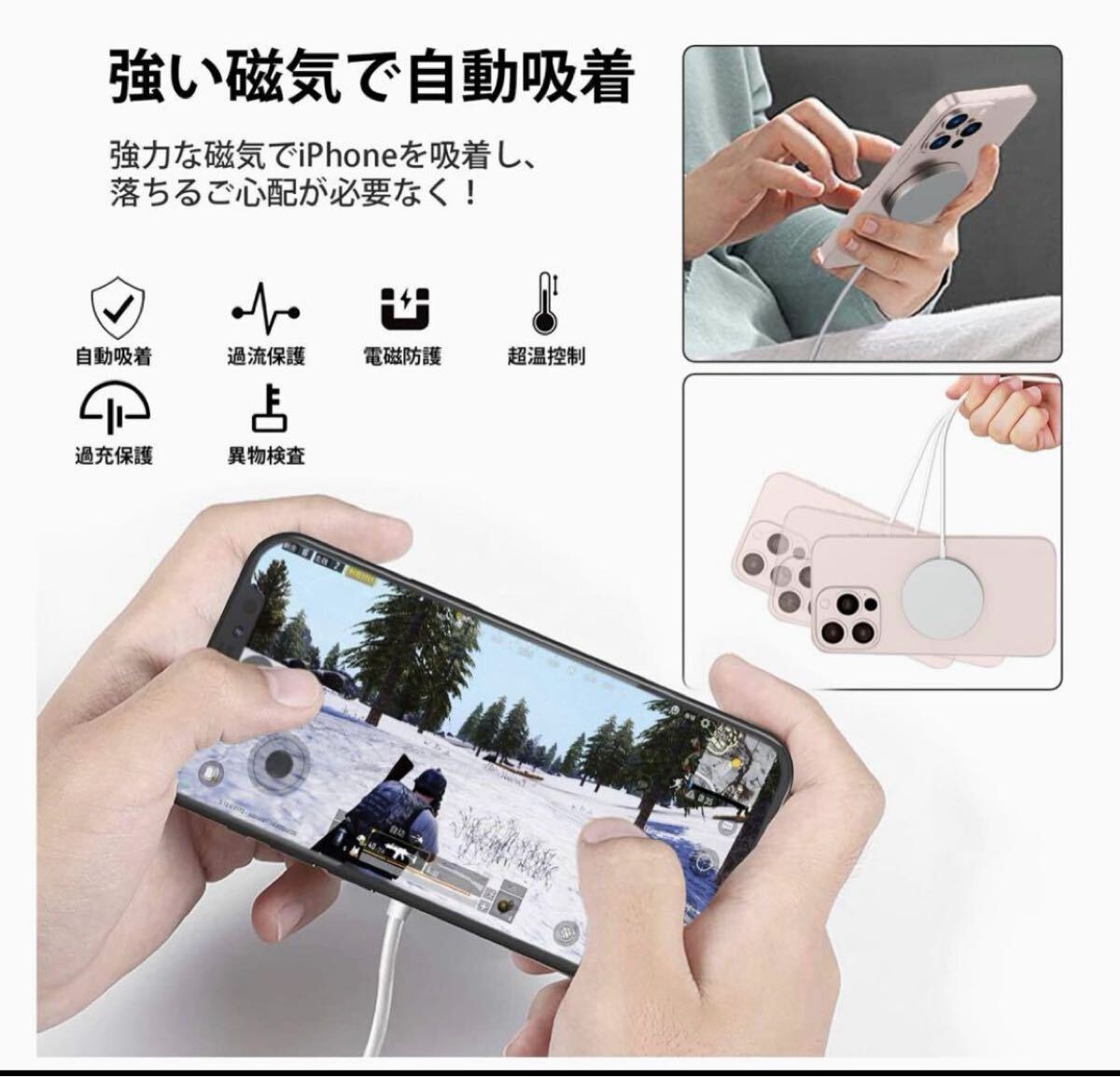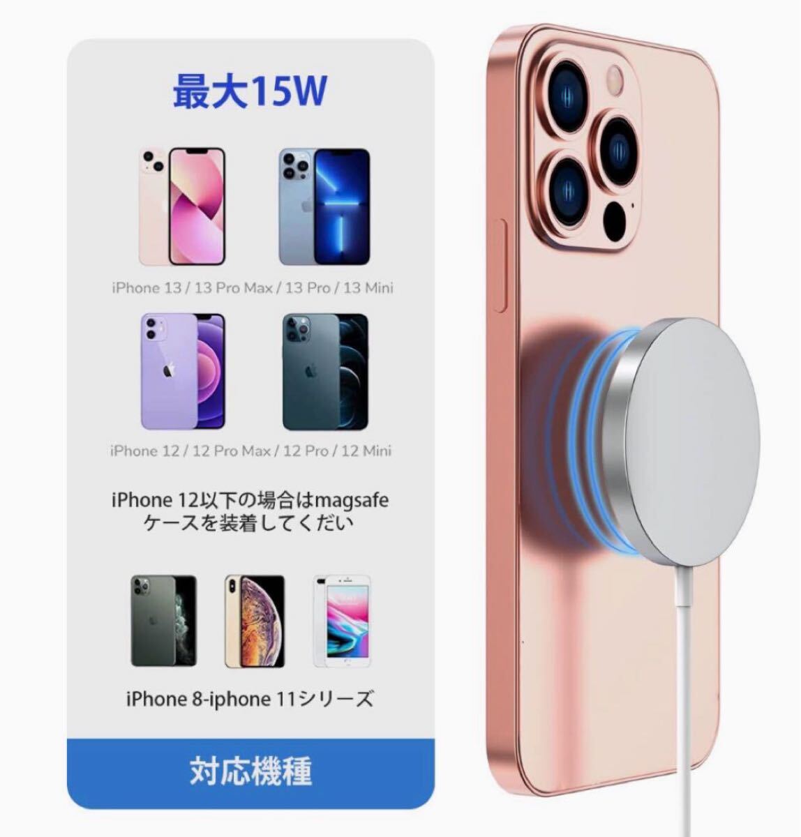 なお他のQi機種にも対応可能ですが、マグネットによる吸着はいたしません。