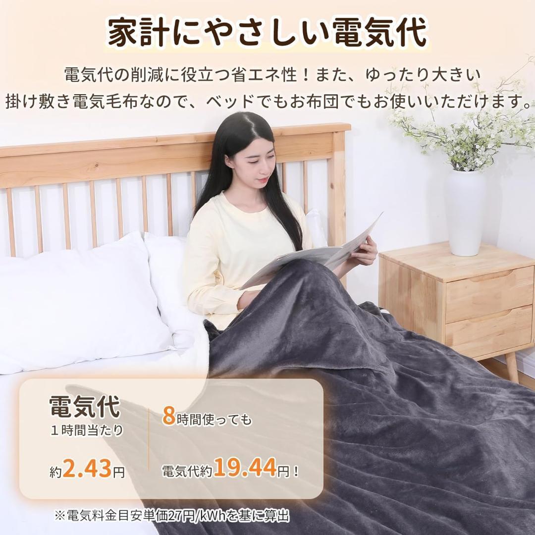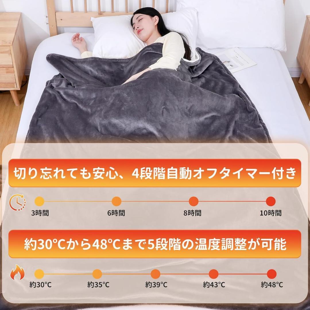 【4段階自動オフタイマー・5段階温度調節】この電気毛布は、オフタイマーを3時間・6時間・8時間・10時間の4段階からお選びいただけます。消し忘れ防止と省エネに効果的で、お子様からご高齢の方まで安心してお使いいただけます。また、温度調節は約30℃~48℃の範囲で5段階(約30℃、約35℃、約39℃、約43℃、約48℃)に設定可能です。お好みの温かさに簡単にお調節いただけます。