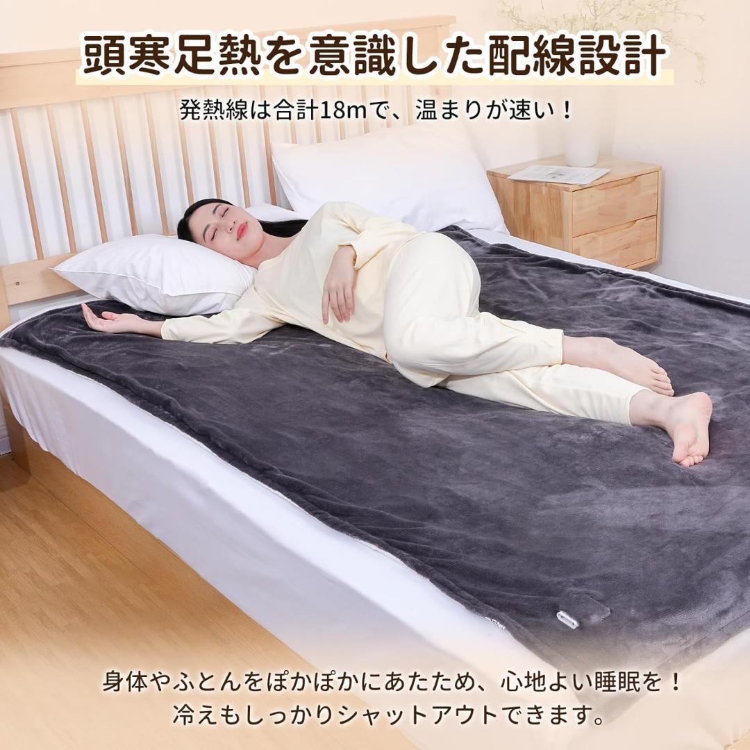 【3分速暖・頭寒足熱を考慮した配線設計】この電気毛布は高効率ヒーターを搭載し、電源入れた後わずか約3分で全身をじんわりと温めます。また、「頭寒足熱」の考え方を採り入れた配線設計により、冷えやすい足元はしっかりと、胸元はほどよく温かく保ち、効率的に快適な温もりをお届けします。