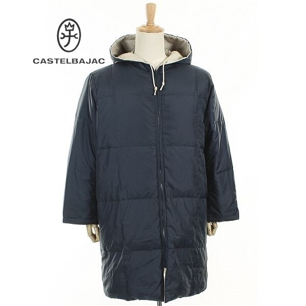 A4368/美品 秋冬 CASTELBAJAC カステルバジャック ジップアップ リバーシブル フード ロング ダウンコートM紺 白/メンズ パーカー ライカ製