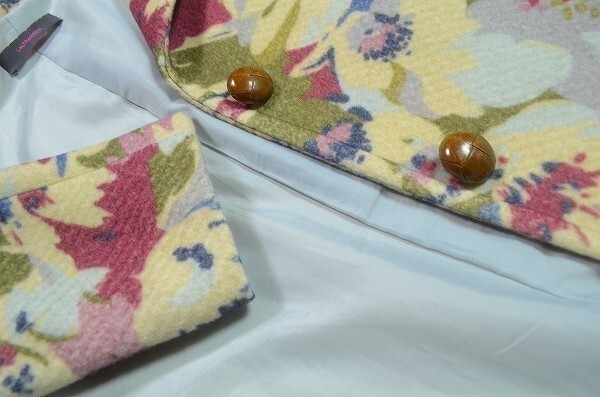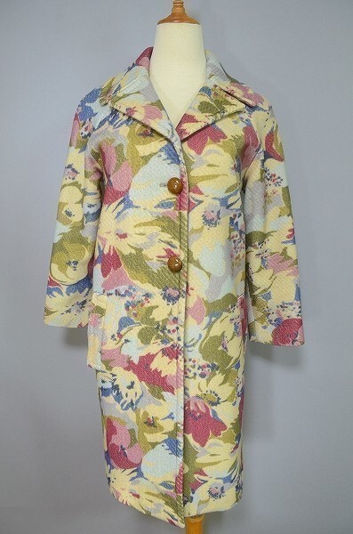 A1783/美品 秋冬 LALTRAMODA ラルトラモーダ ウール 花柄 総柄 くるみ釦 ロング チェスターコートL 11程 マルチカラー/レディース 三喜商事