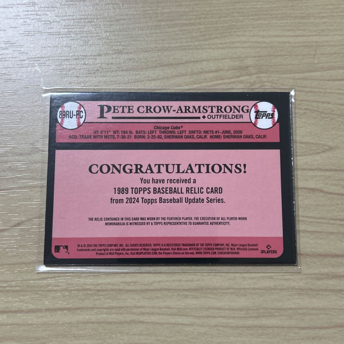 こちら【Pete Crow Armstrong】 Topps MLB Cubs カブス PCA 2034 RC ルーキー Relic レリック カード ※1円スタート※でございます。
