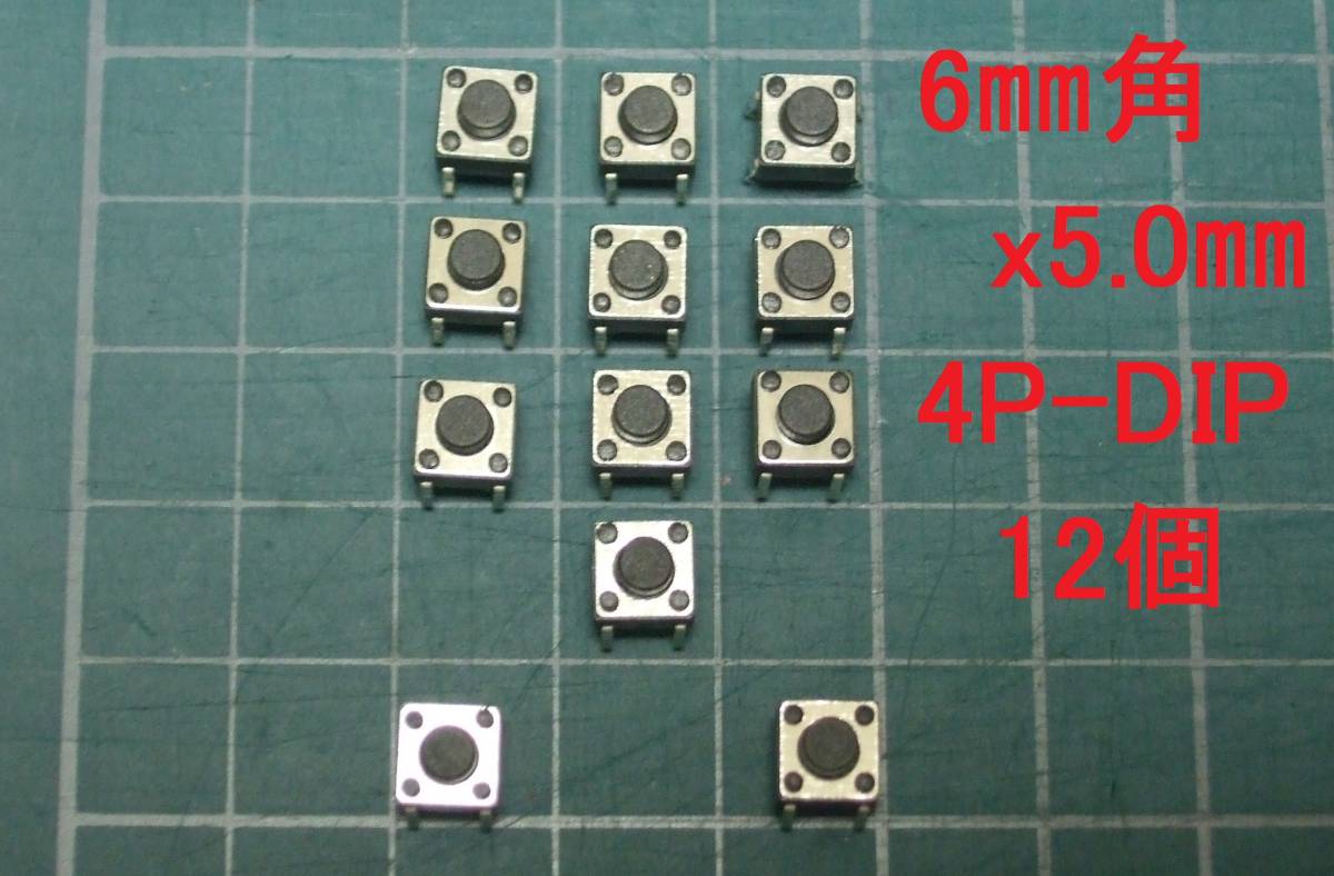 タクトスイッチ 6mm角x高さ5.0mm 4ピン 10個+事前保証2個を付けて 1セット12個