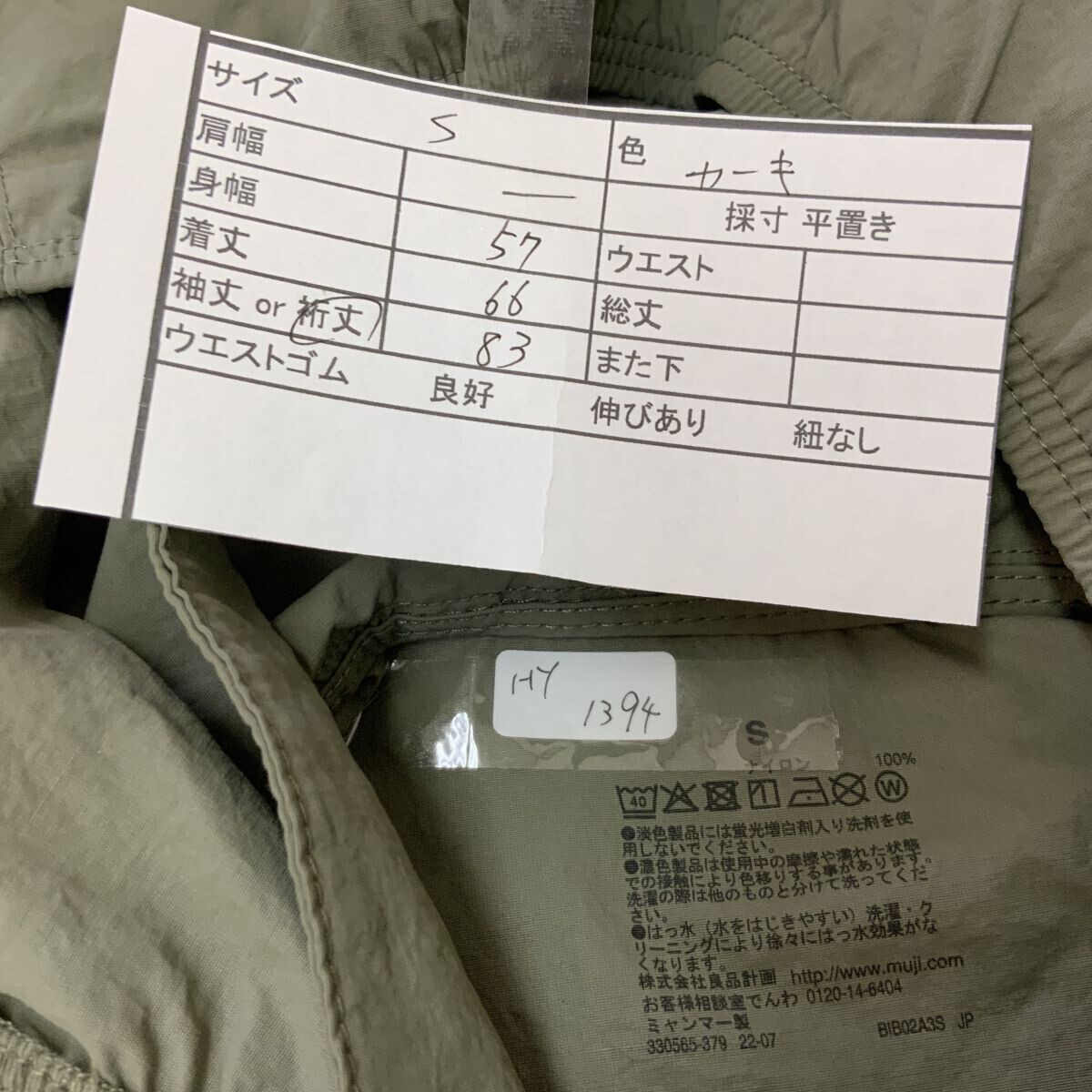 HY1394 良品計画 MUJI ナイロンブルゾン カーキ S