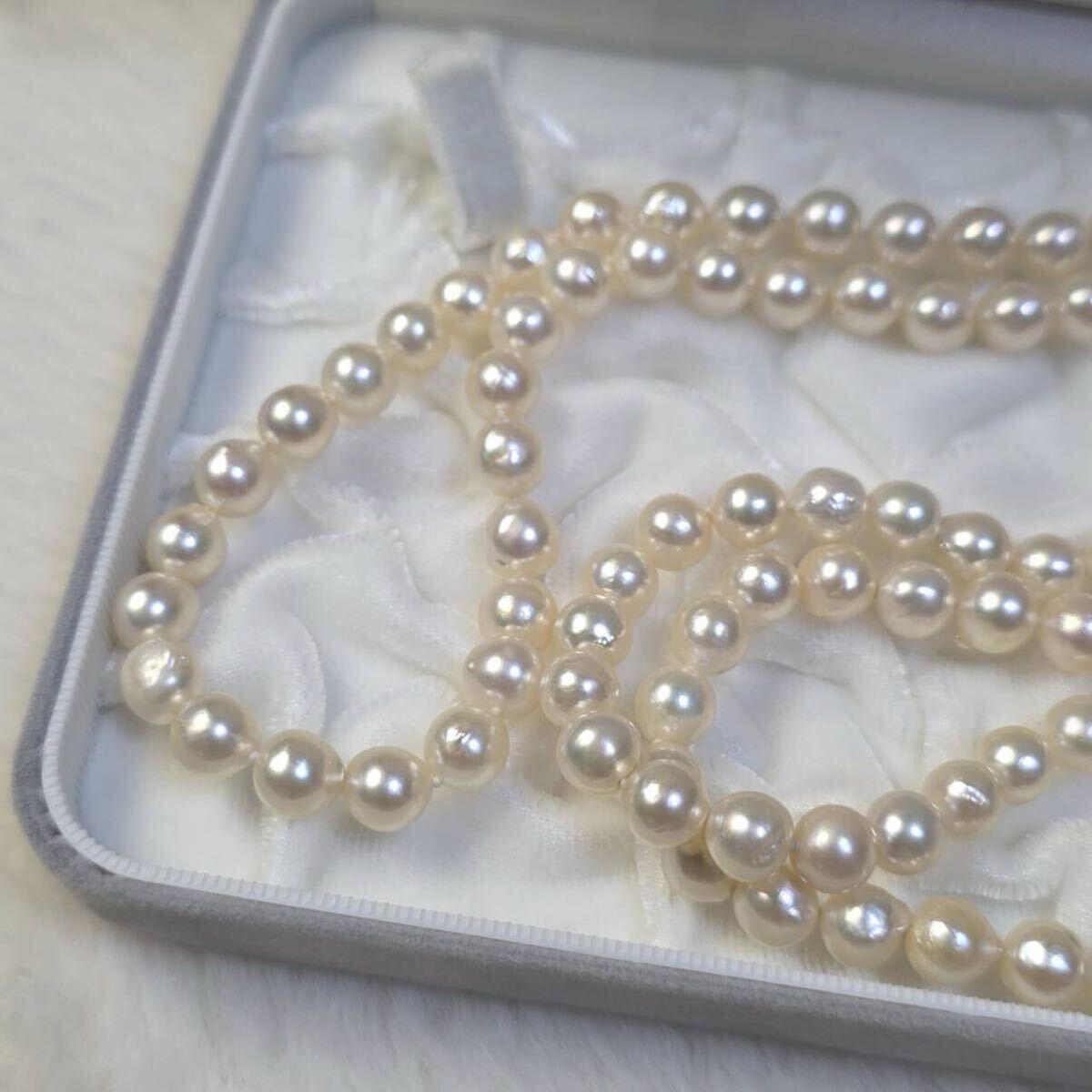 極美品 アコヤ真珠 ネックレス pearl パール ホワイトピンク あこや真珠 テリ最強 干渉色◎ 本真珠 SILVER オーロラ