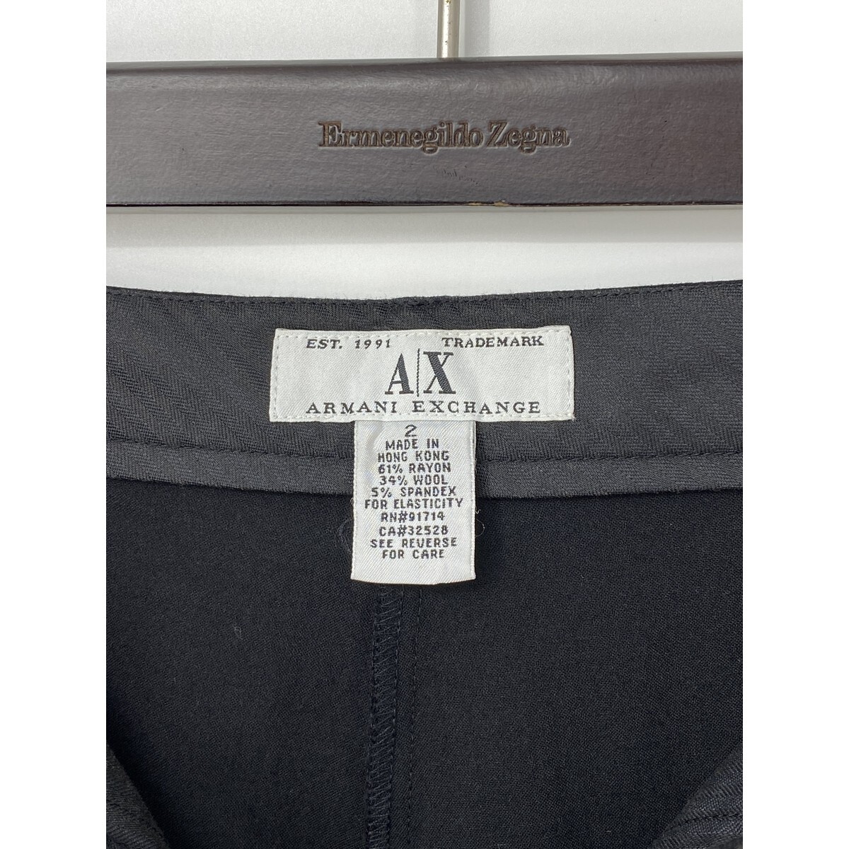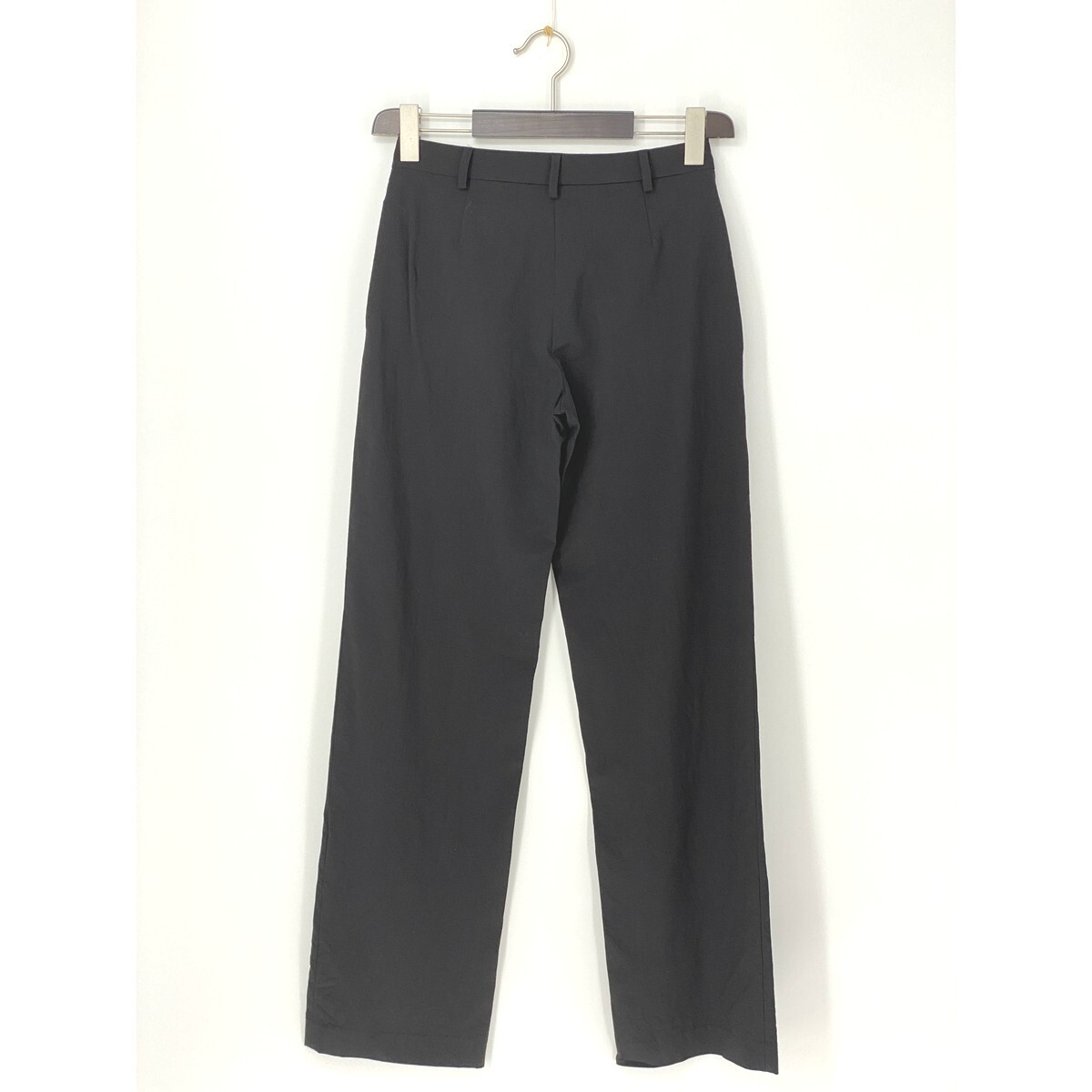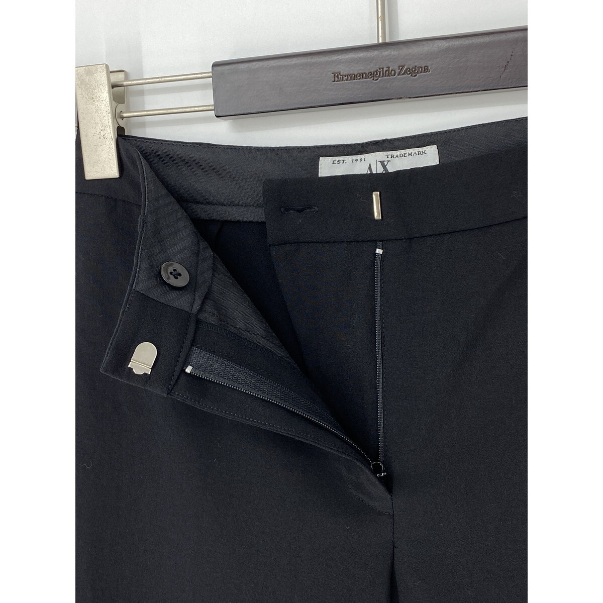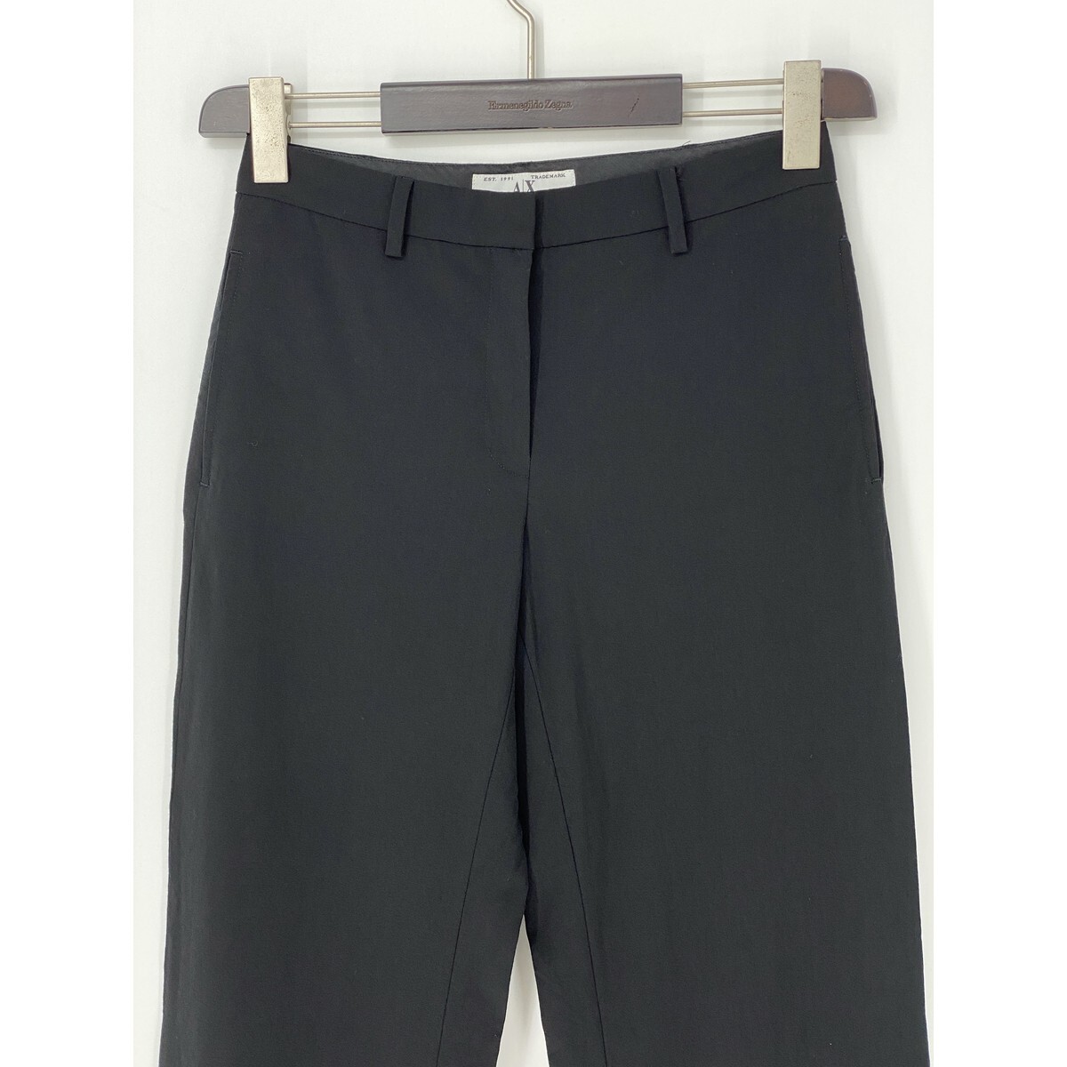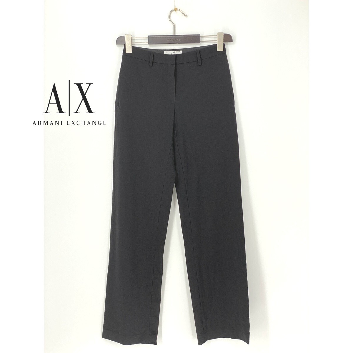 A9236/極美品 春夏 ARMANI EXCHANGE アルマーニ レーヨン ウール ストレッチ ストレート ワイドパンツ スラックス 2 M程 黒 レディース