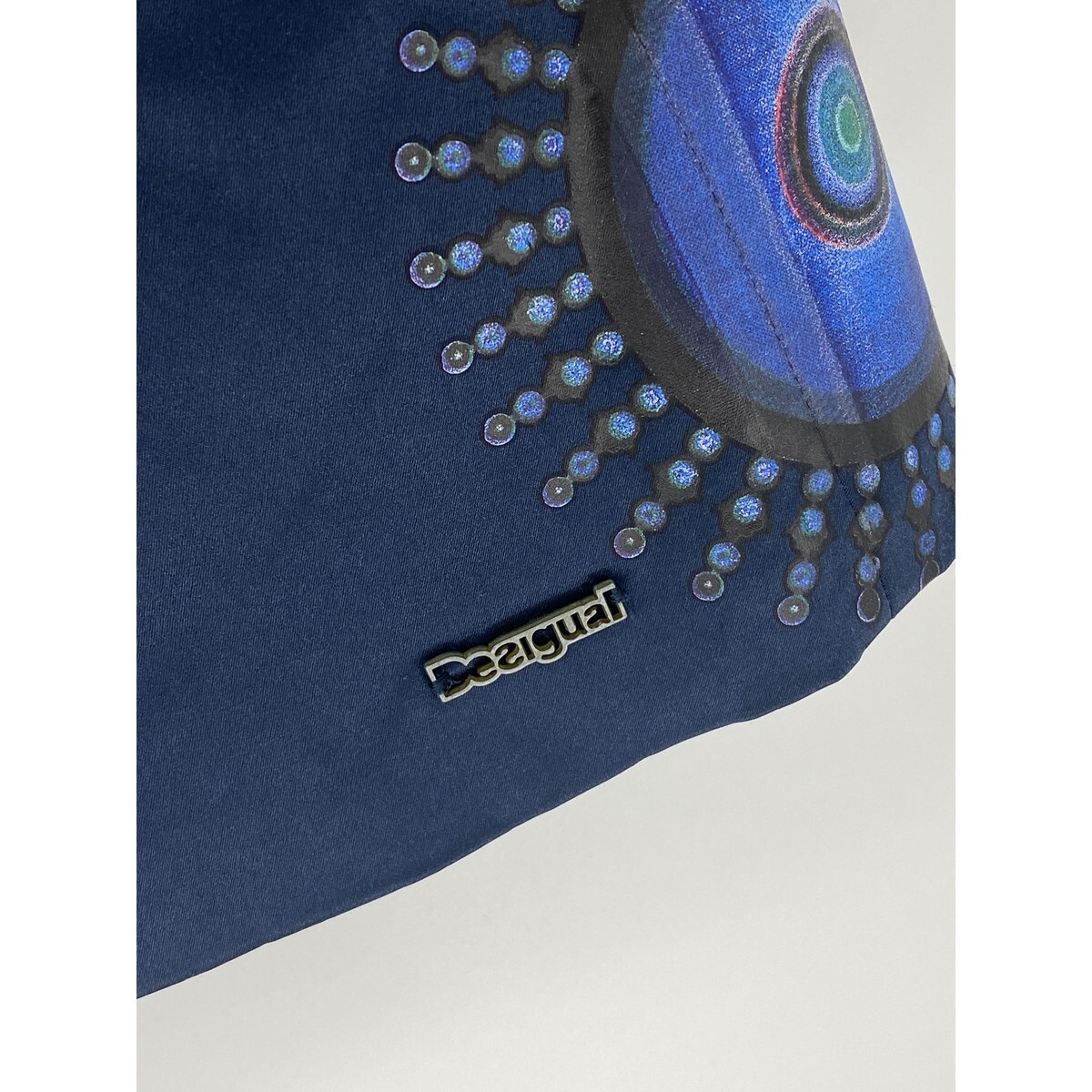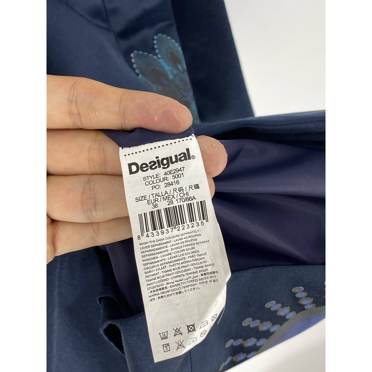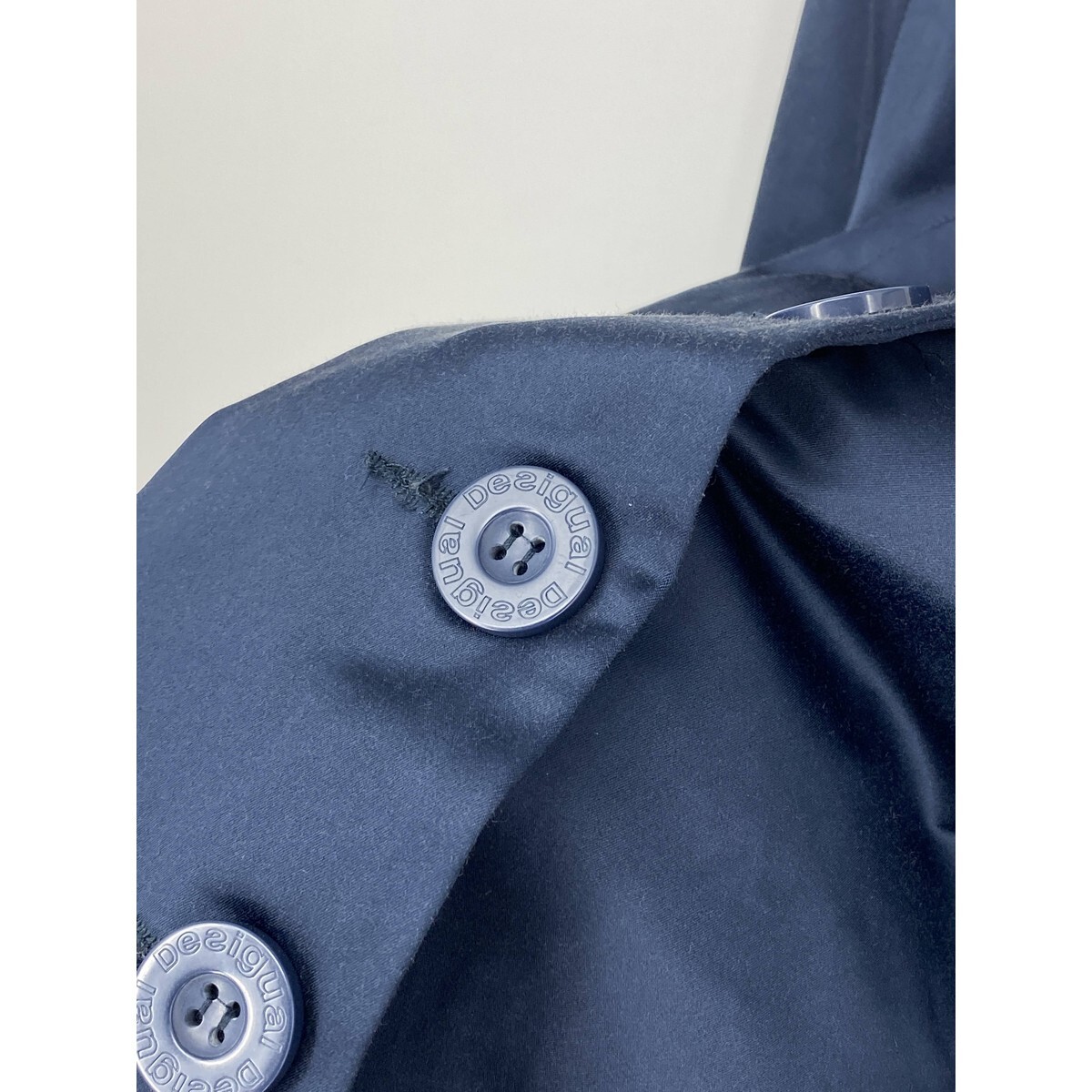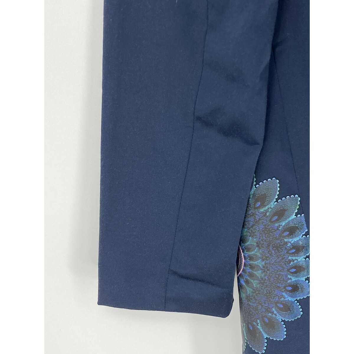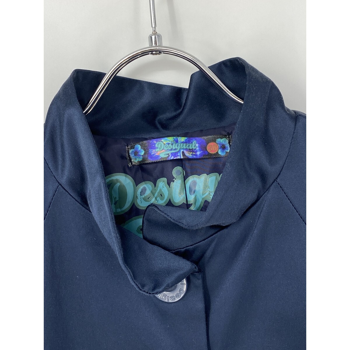 A9760/極美品 春夏 Desigual デシグアル コットン 花柄 プリント ショールカラー ロング 膝丈 ステンカラー コート 38 M程 紺 レディース