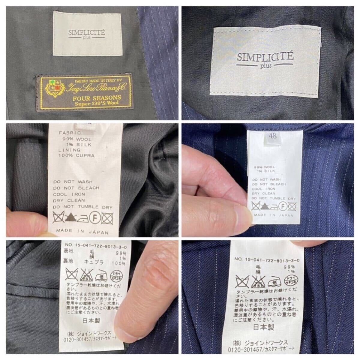 Simplicite plus 2B Loro Piana Suit Set Up シンプリシテェ プリュス ロロピアーナ ウール シルク スーツ セットアップ SIZE 48 NAVY 系