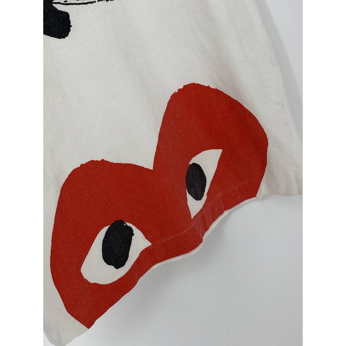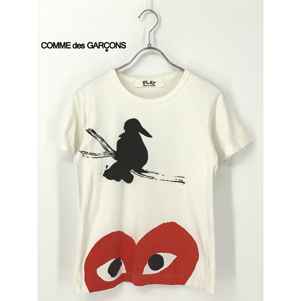 A8805/美品 春夏 PLAY COMME des GARCONS コムデギャルソン コットン 半袖 デカロゴ プリント Tシャツ カットソー M程 白 レディース