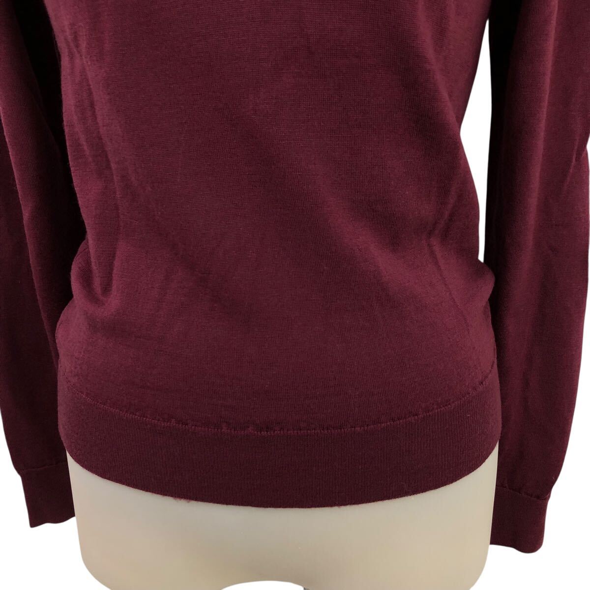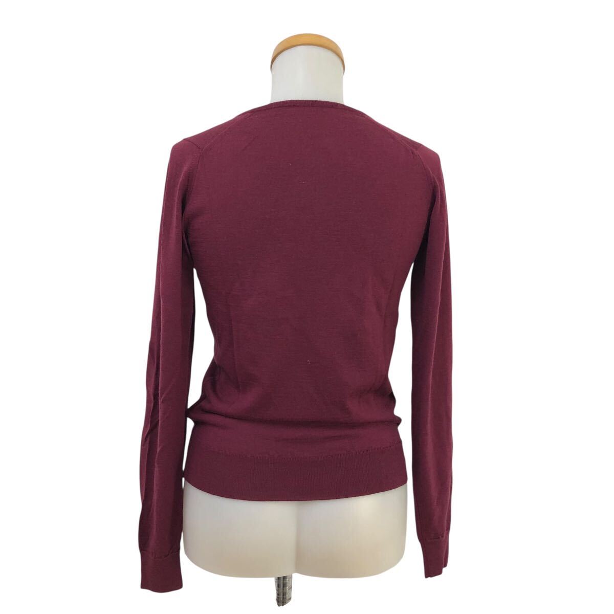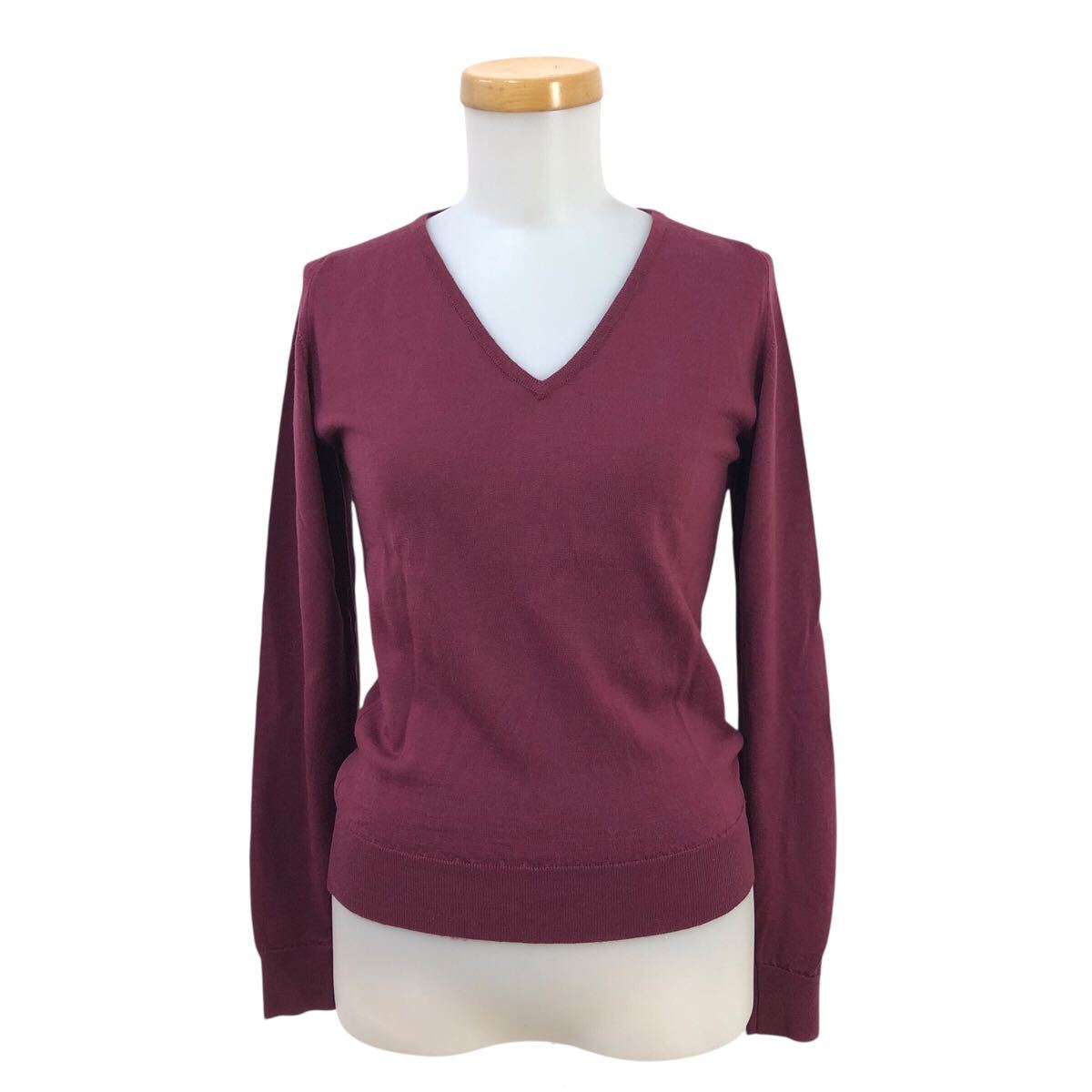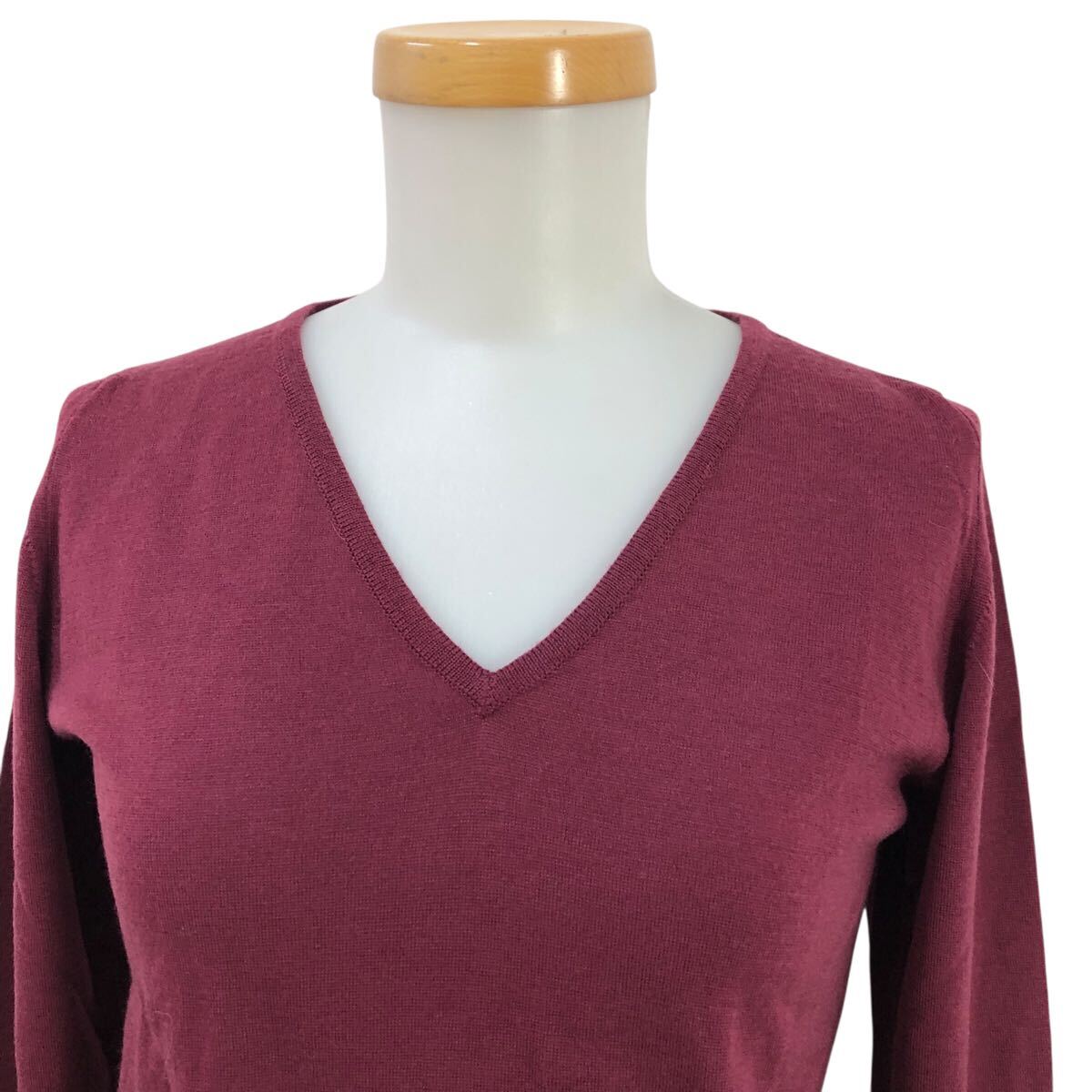 10Nm329-67 イギリス製 JOHN SMEDLEY ジョンスメドレー ウール 毛 100% 長袖 Vネック ニット セーター トップス ボルドー レディース
