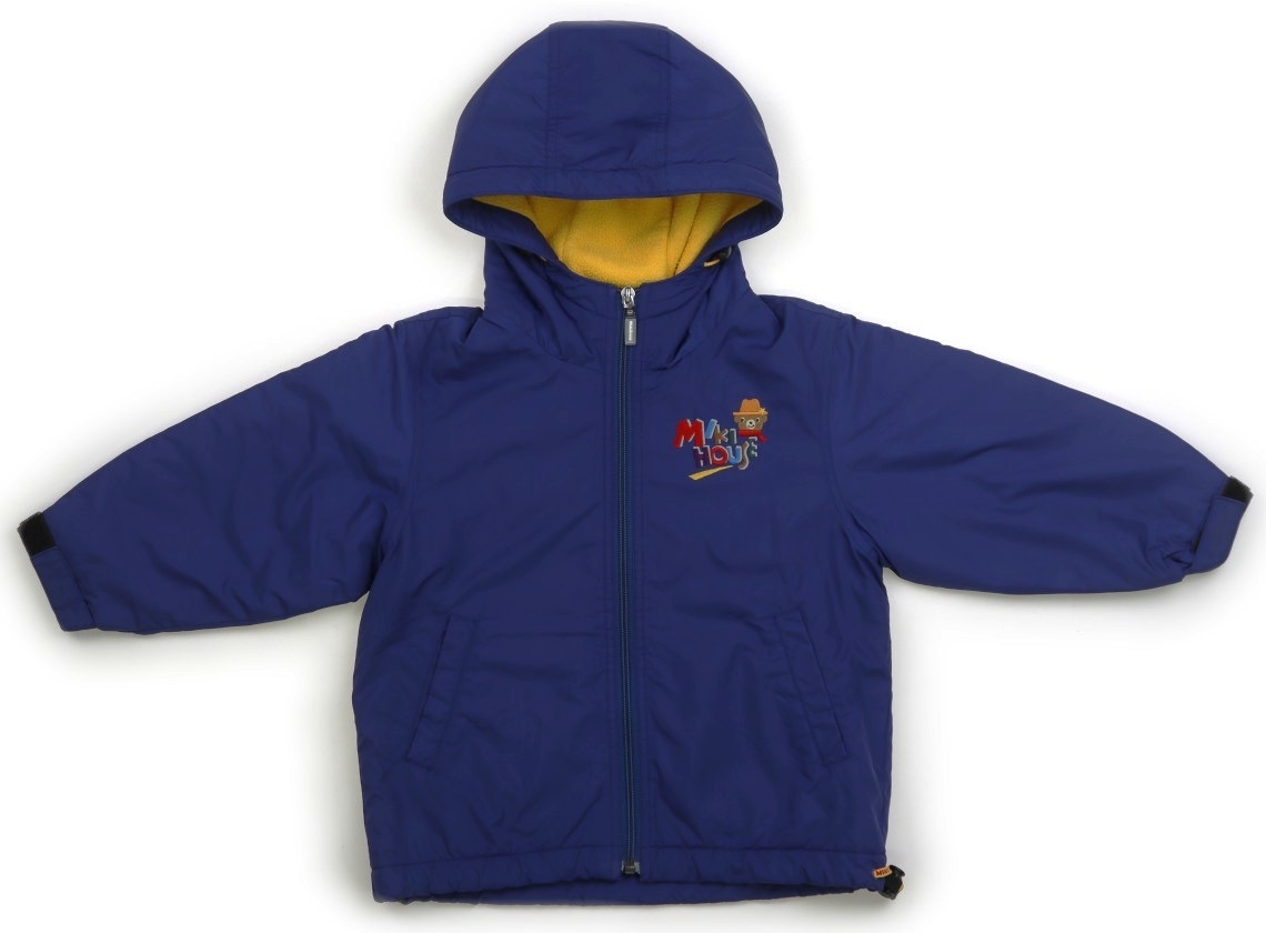 ポリエステル。身頃の裏地はフリース生地。中綿の暖かいアイテムです。フードは縫い付けです。腹部や袖、背中下に擦れ傷や小さな傷がありますがまだお使いいただけそうです。
