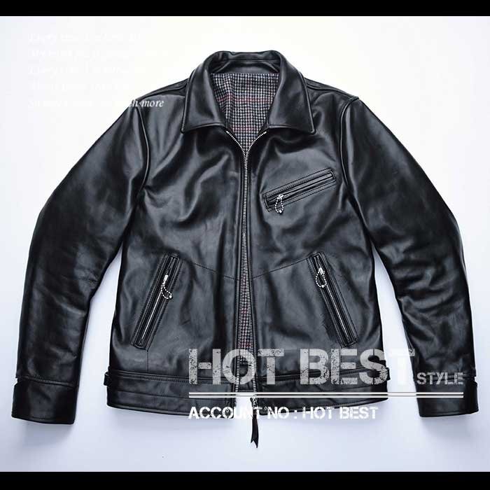 最高峰 革ジャン メンズ シンプルながらもクラシックな雰囲気を纏う 茶芯馬革レザージャケット【L】Y717