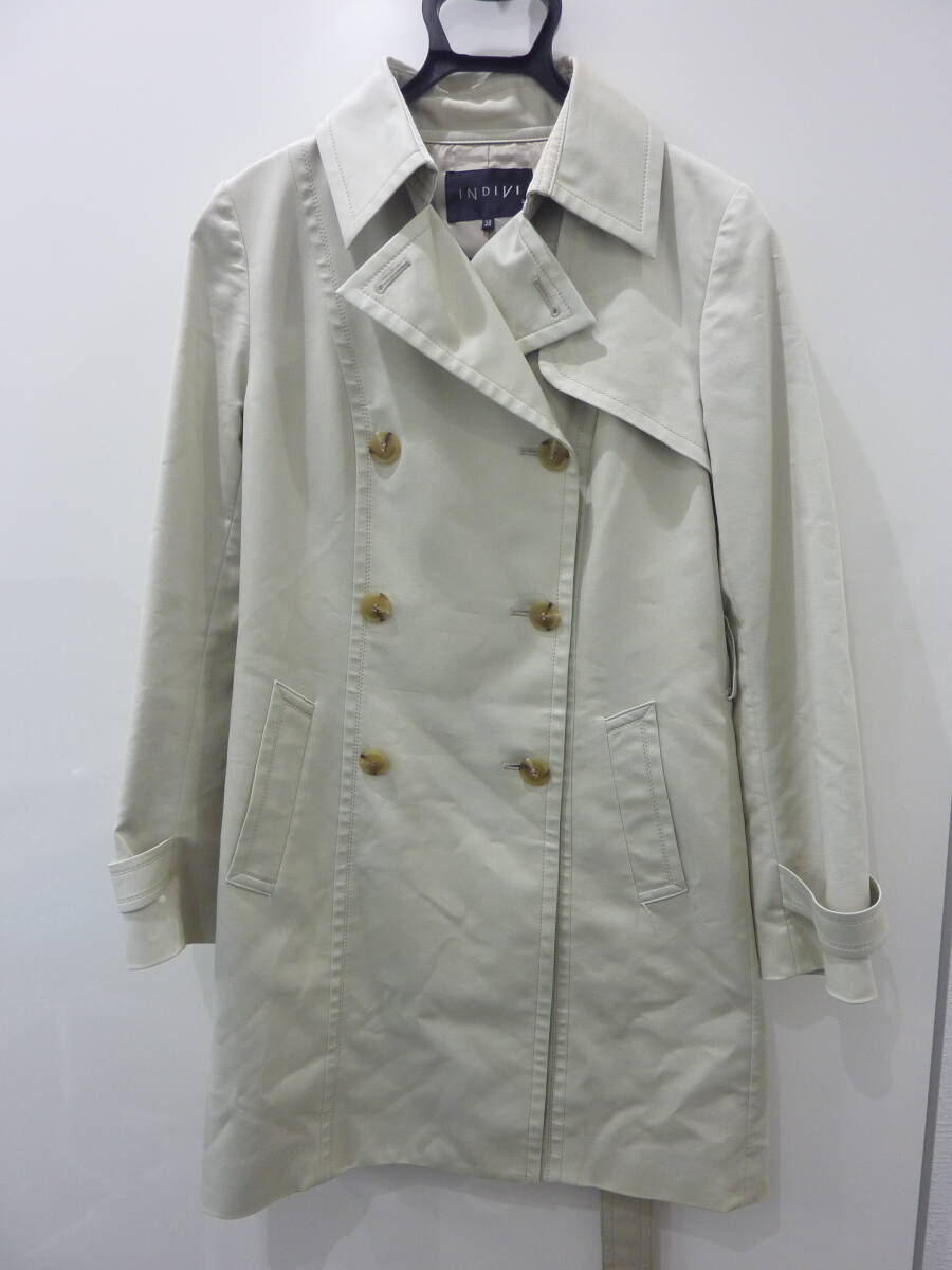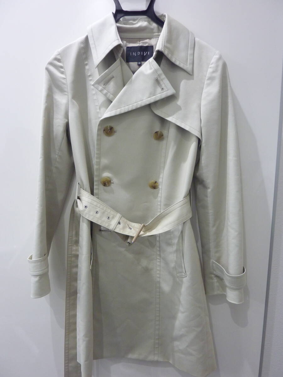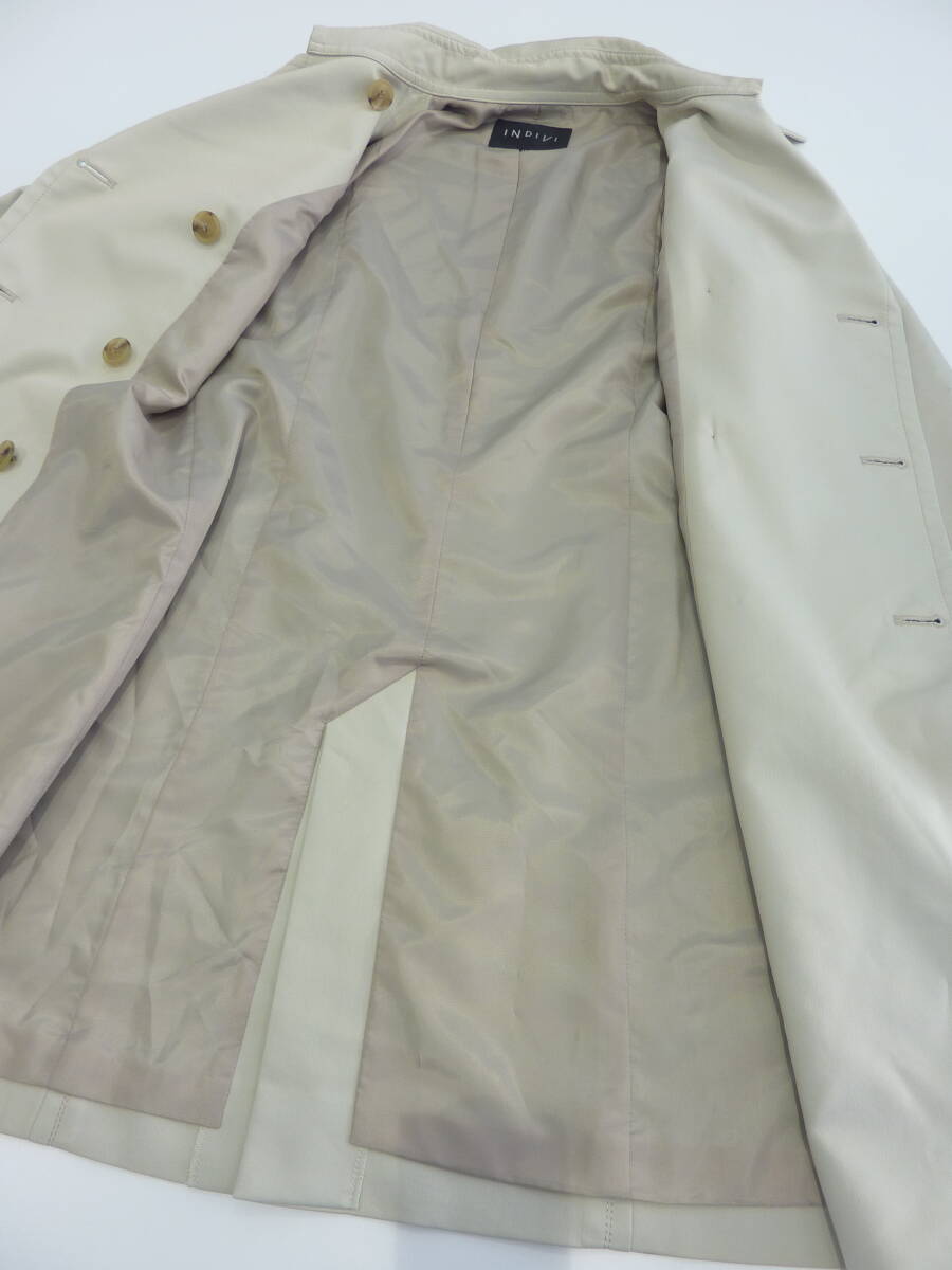 #1875◆INDIVI◆トレンチコート 38サイズ ライトベージュ ベルト付 レディース アウター 中古品