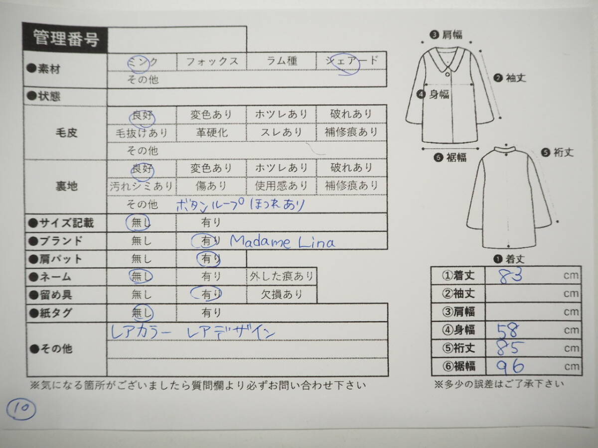 ☆シェアードミンク☆セミロングコート☆着丈83cm☆レアカラー☆レアデザイン☆Madame Lina☆