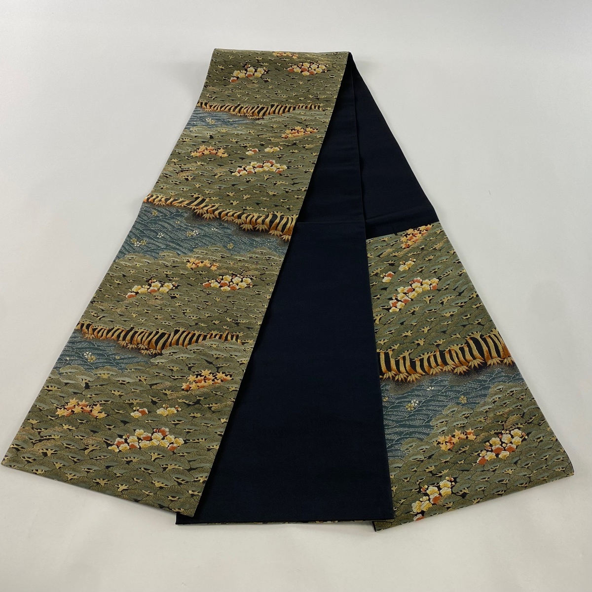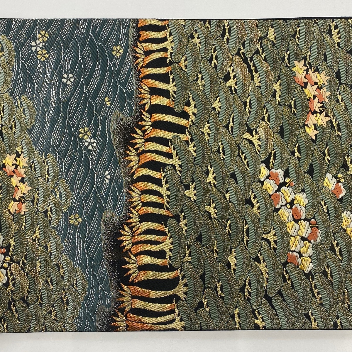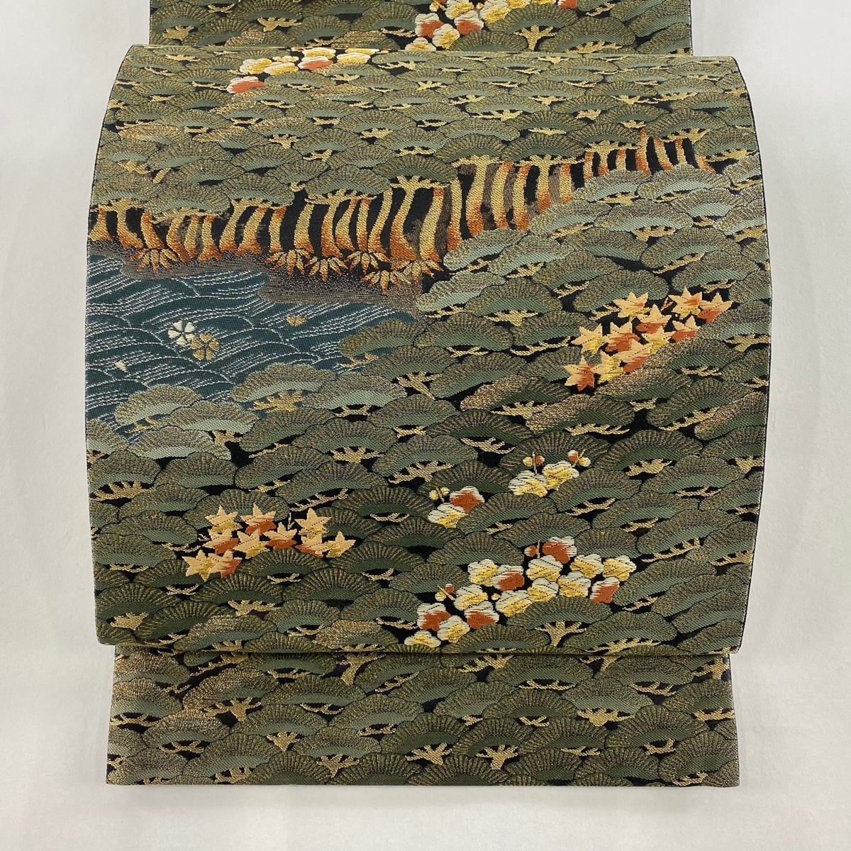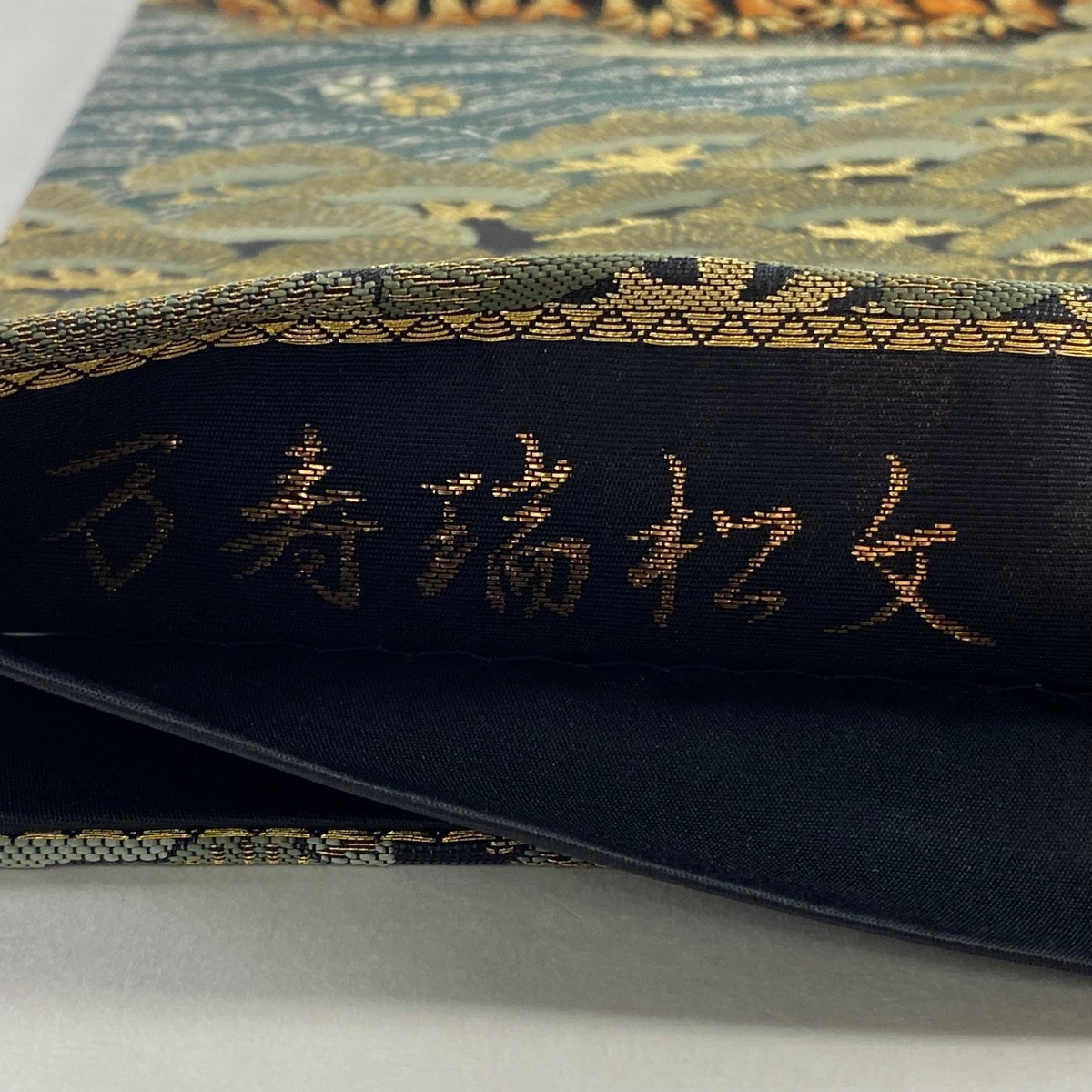 | 袋帯 秀品 万寿瑞松文 松竹梅 波 金糸 箔 灰緑 六通 正絹 【中古】 |