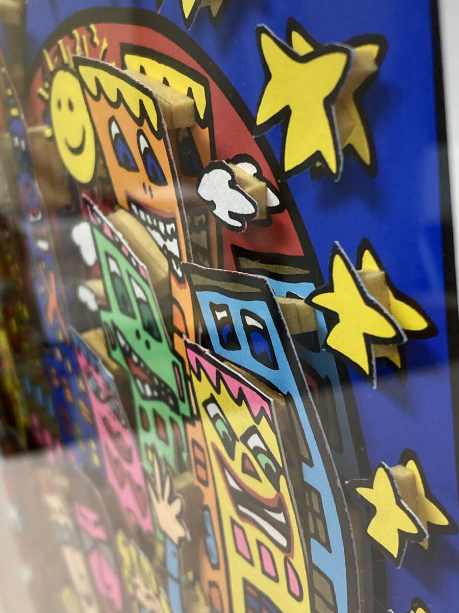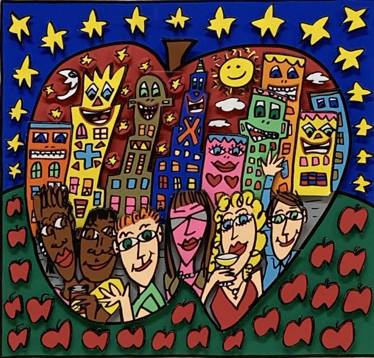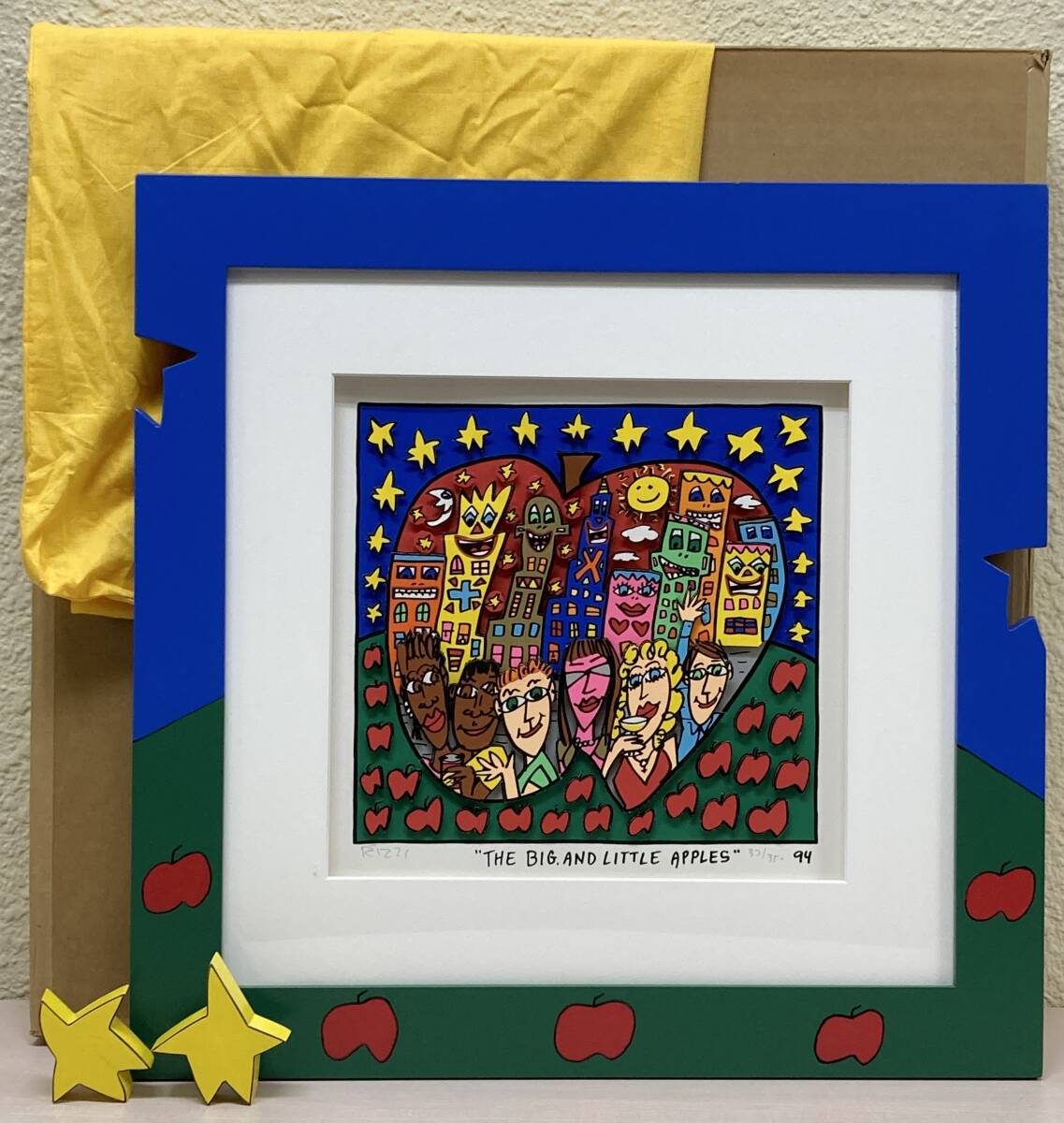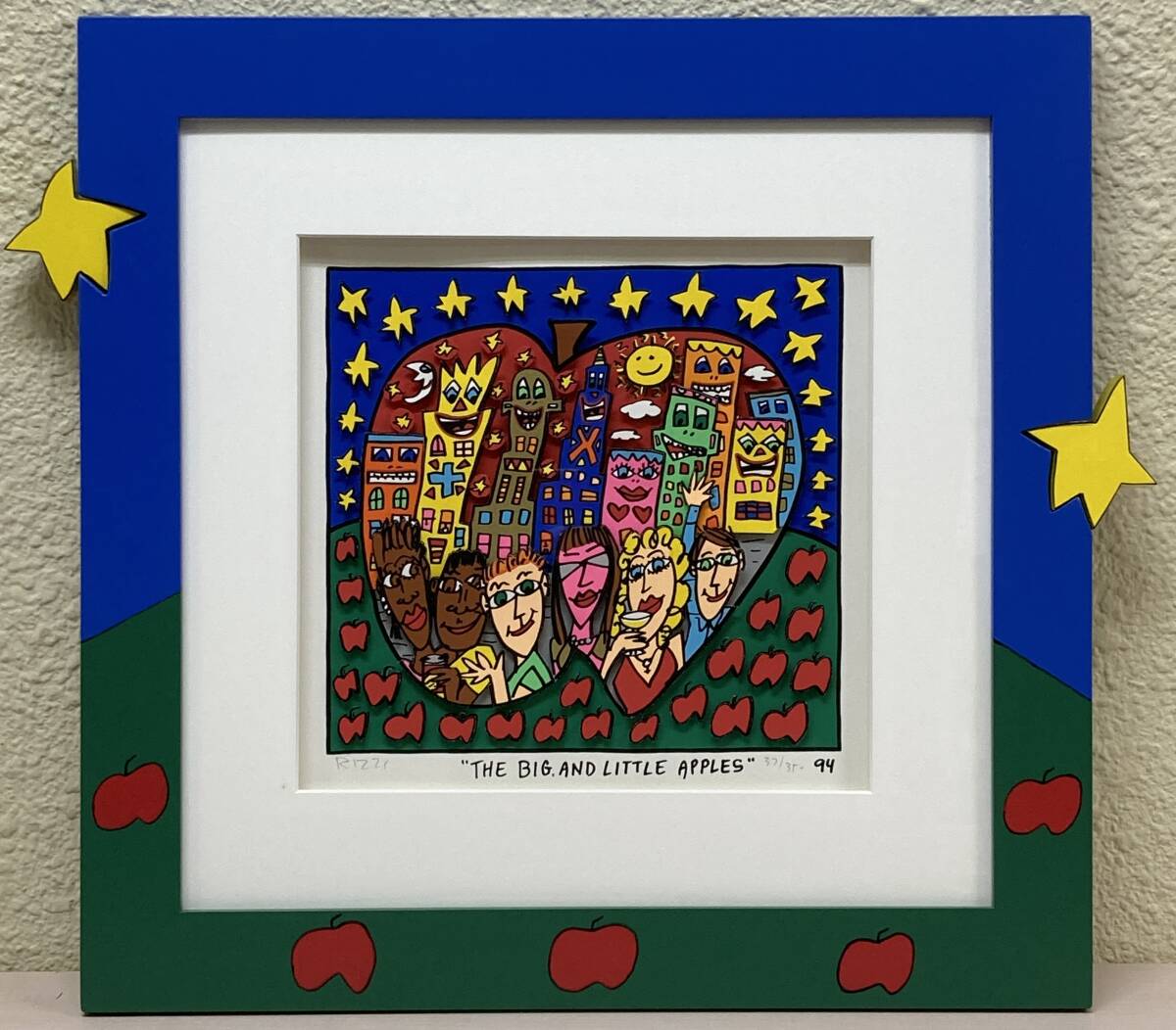 ジェームス・リジィ/James Rizzi「THE BIG AND LITTLE APPLES」3Dシルクスクリーン 星型額パーツ2個あり 額装 真作保証 C