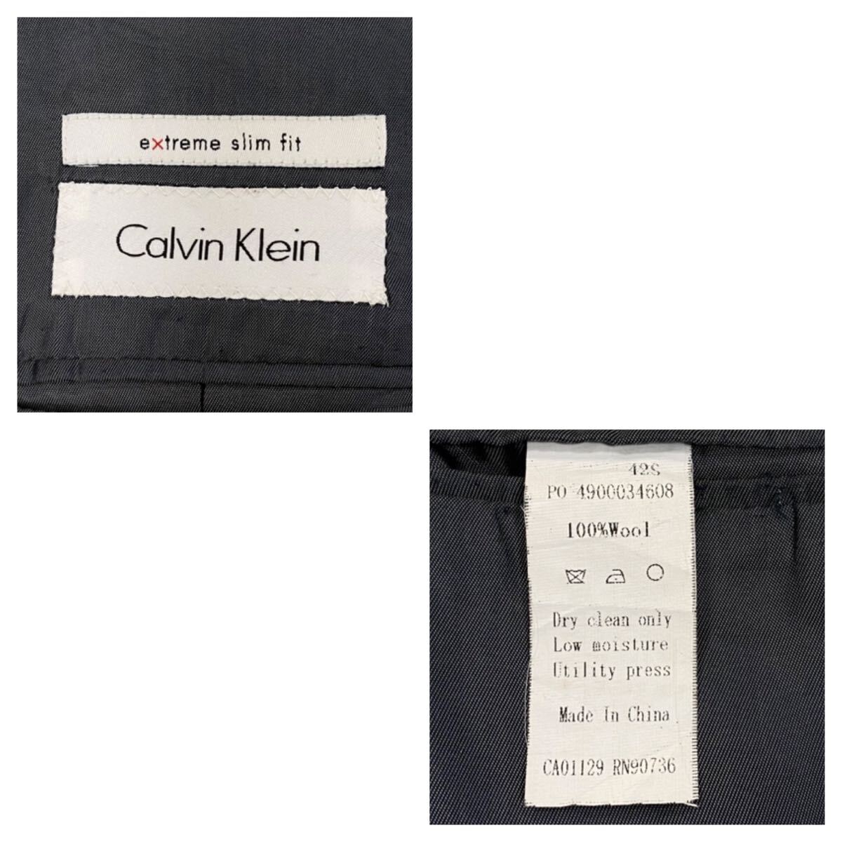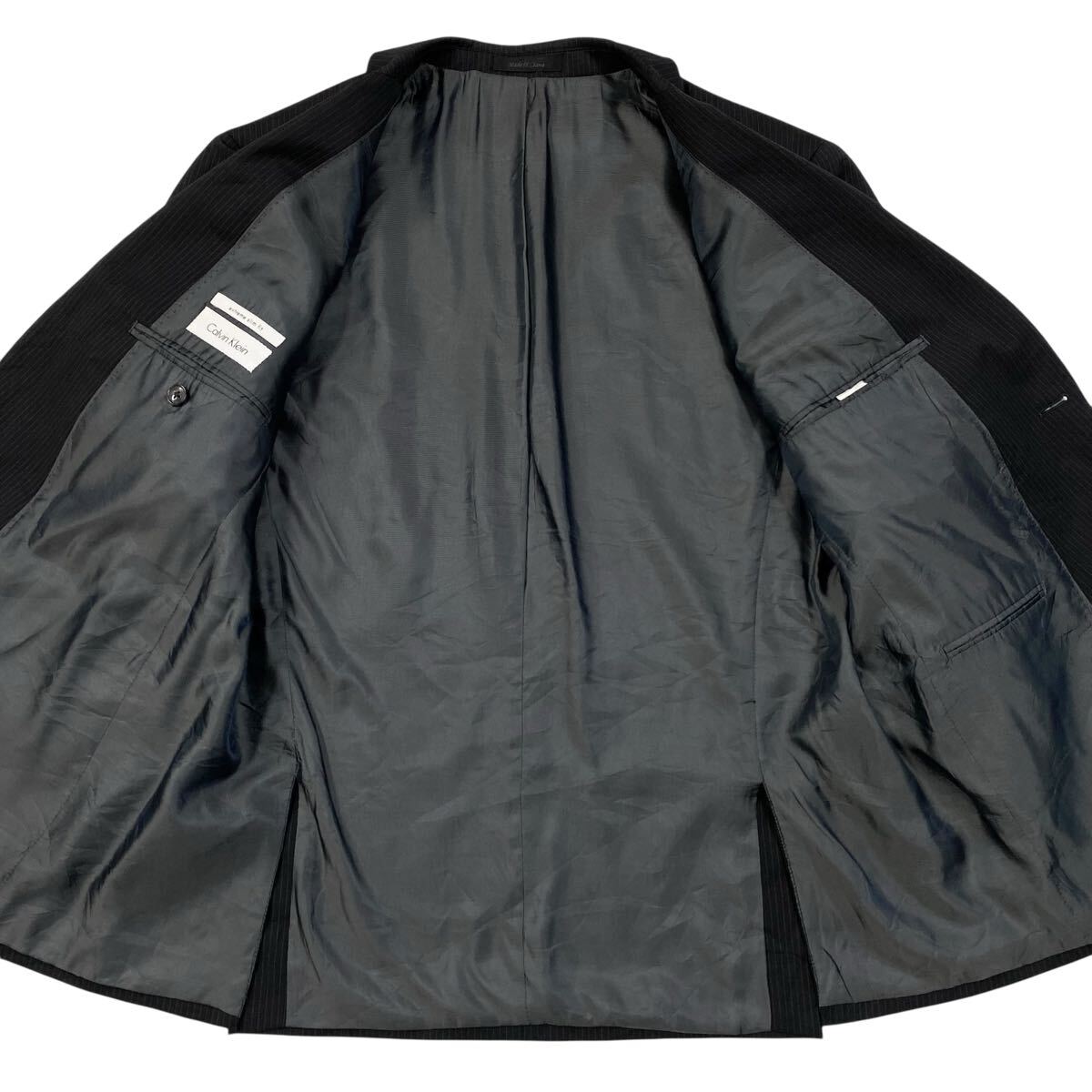 【Calvin Klein(カルバンクライン)テーラードジャケット 2B ストライプ柄 メンズ42S ブラック/他】