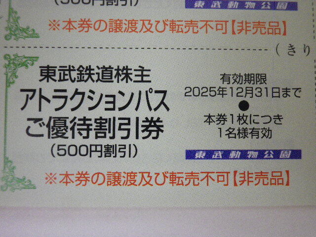 最新 東武鉄道 株主優待 東武動物公園 入園券+割引券 即決 | ||