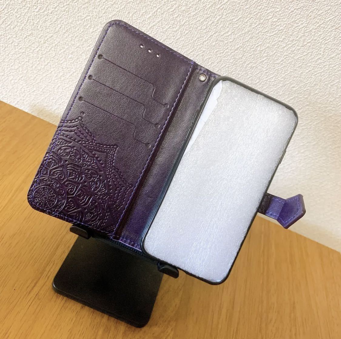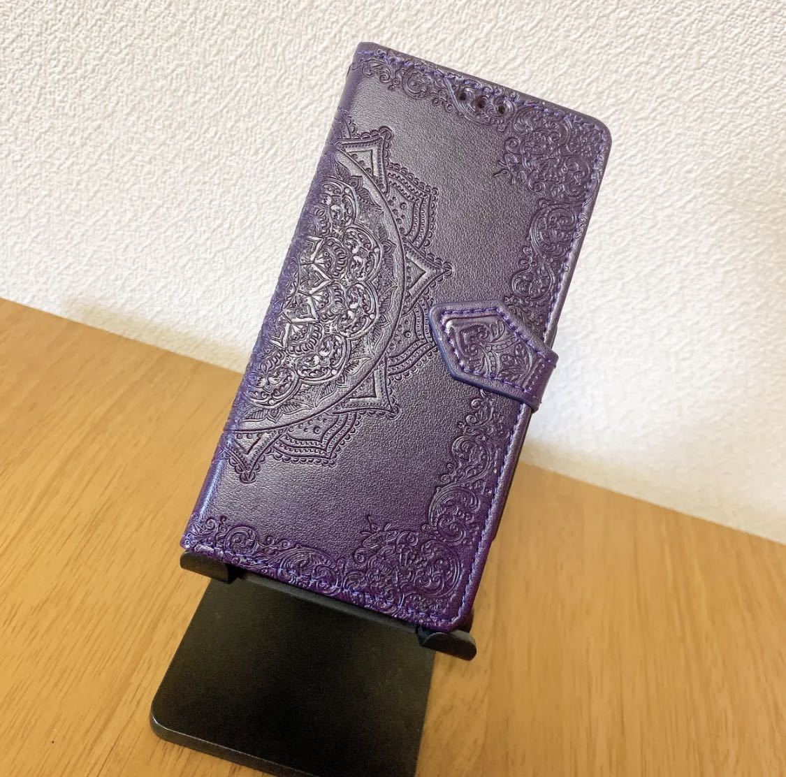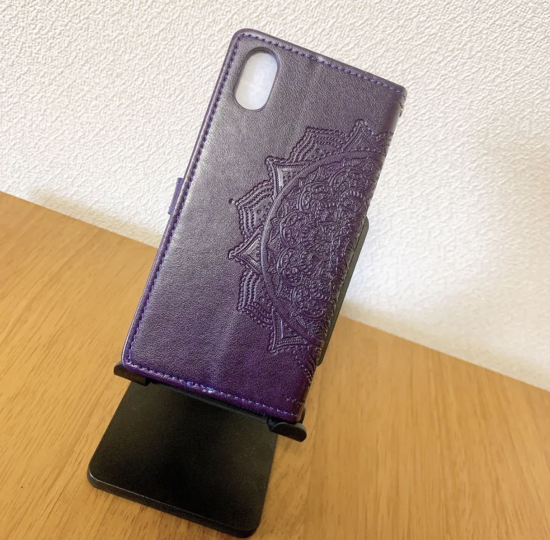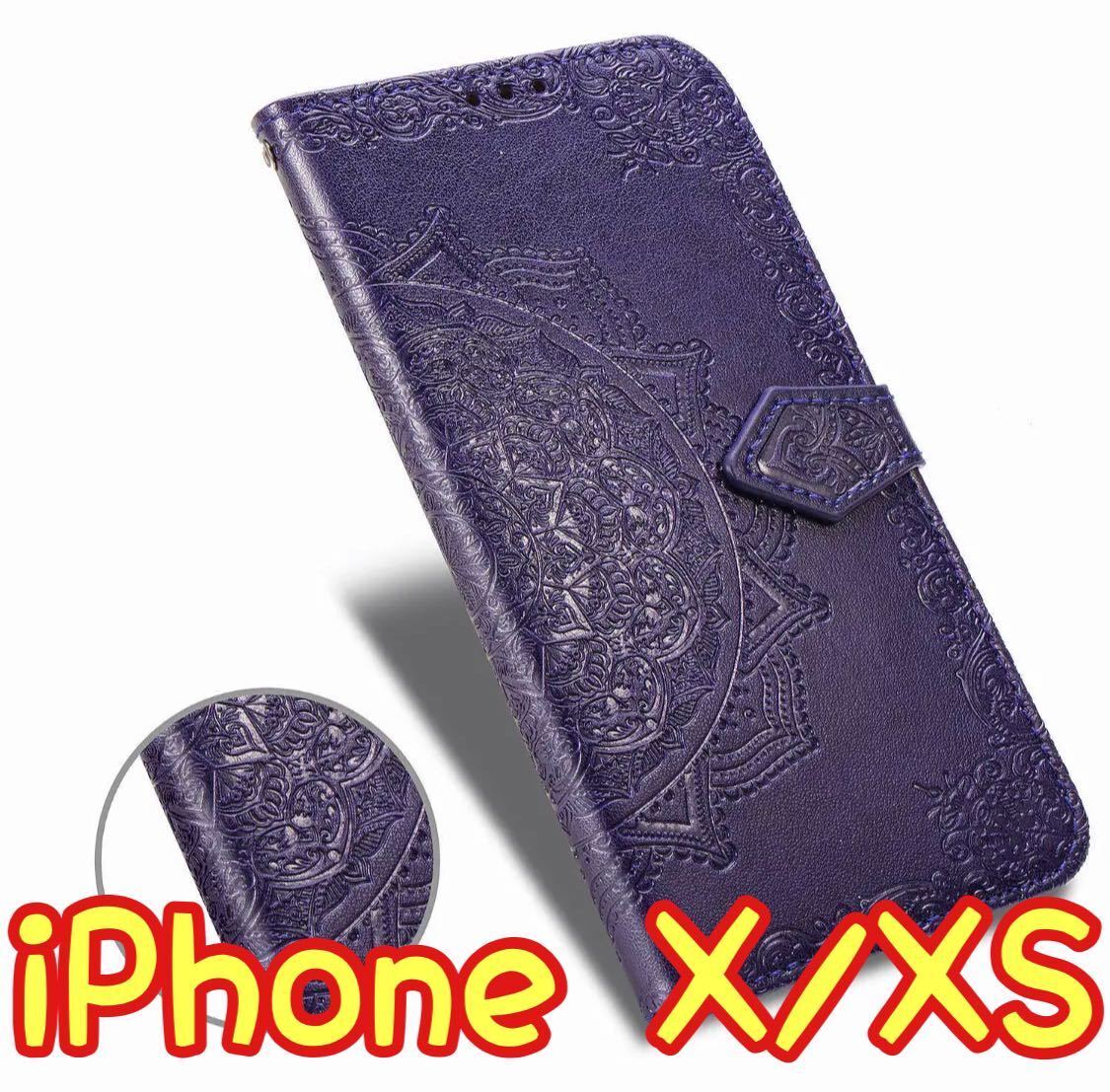 エンボス加工スマホケース 手帳型 iPhone X/XS パープル