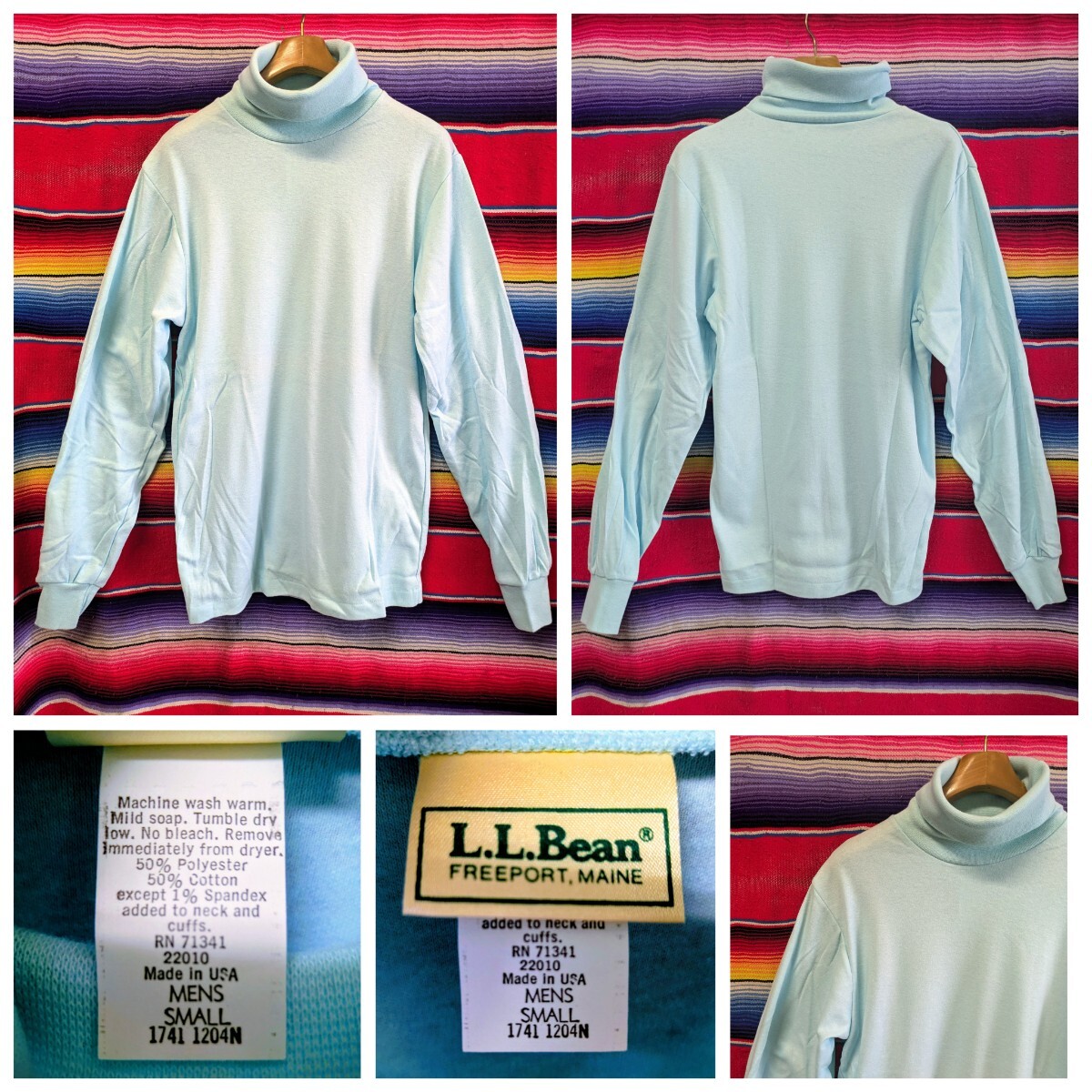 80年代USA製llbeanハイネック長袖ロンTの出品。サイズ表記MEN'S.S。実寸は着丈約67センチ、身幅約45センチ、肩幅約41センチ程度。個人保管に伴う皺や微細な汚れ有り。希少なデッドストック。雰囲気充実の1着。今回は100円スタートでの開催、10/13(祝)終了オークションとなります。格安での出品ですが、古着及びヴィンテージ、オークションでのお買い物にご理解ある方のみ自己紹介欄を一読のうえNCNRにてのご入札でお願いいたします。