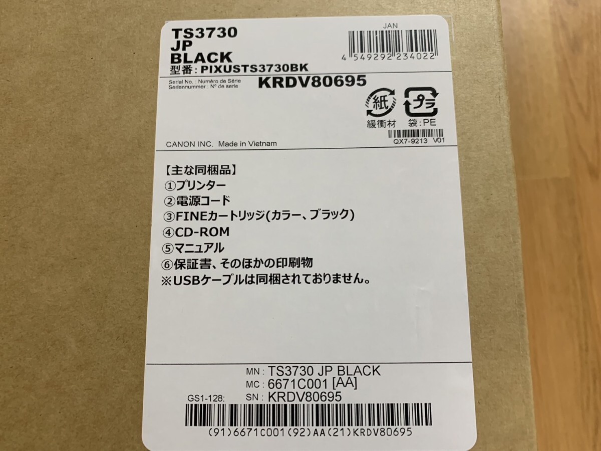 CanonのPIXUSプリンターTS3730ブラックになります。新品、未使用となります。本体、説明書、保証書など同梱いたします。インクカートリッジは付属いたしません。本体に伝票を貼って発送いたします。梱包希望の場合は+100円で可能です。